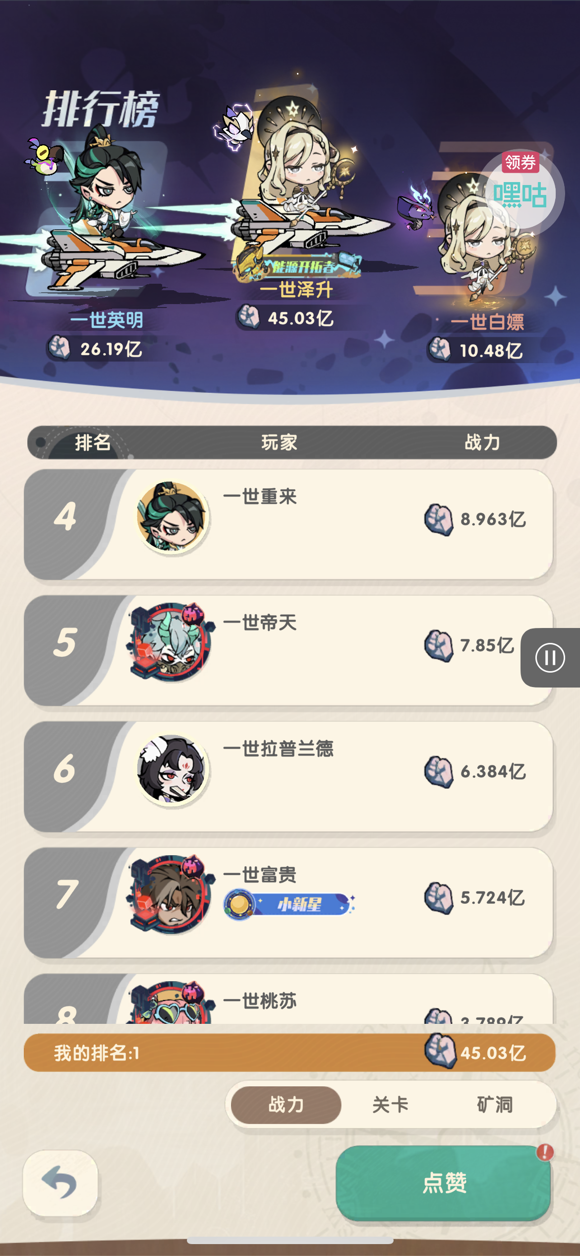 0.1折扣手游平台游戏排行榜