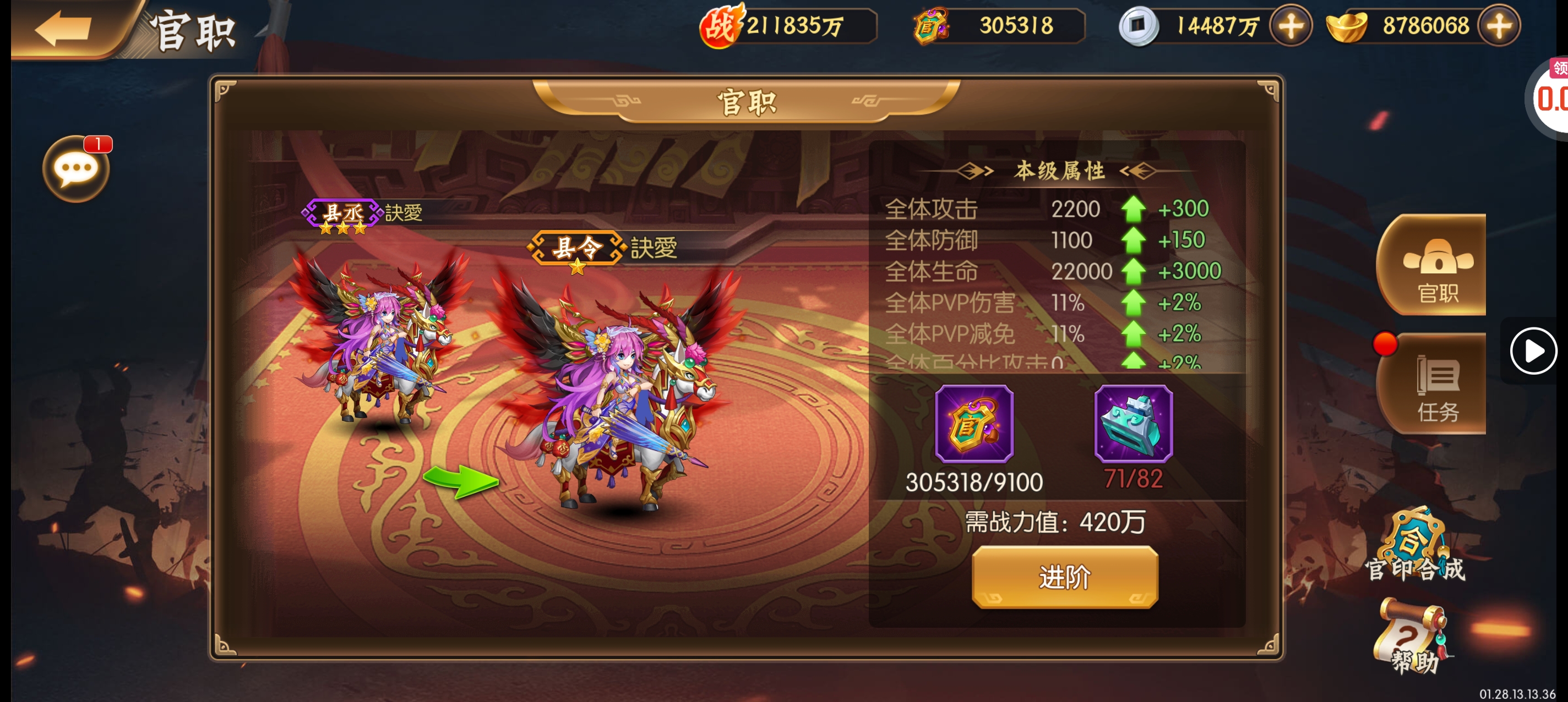 强化药剂*200、钻石招募币*20、金币*50W(每个账号限领一次)