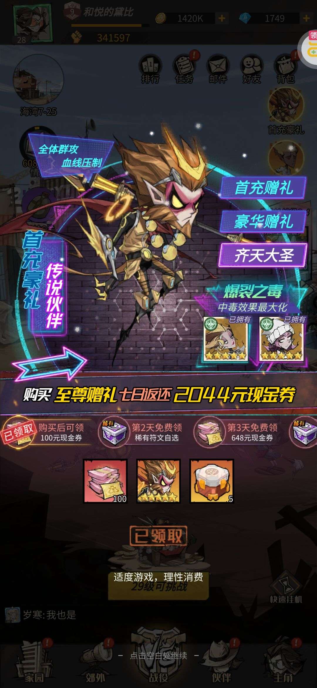 强化药剂*200、钻石招募币*20、金币*50W(每个账号限领一次)