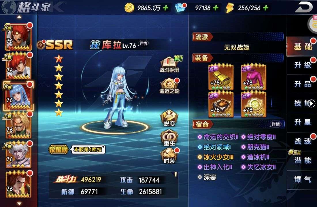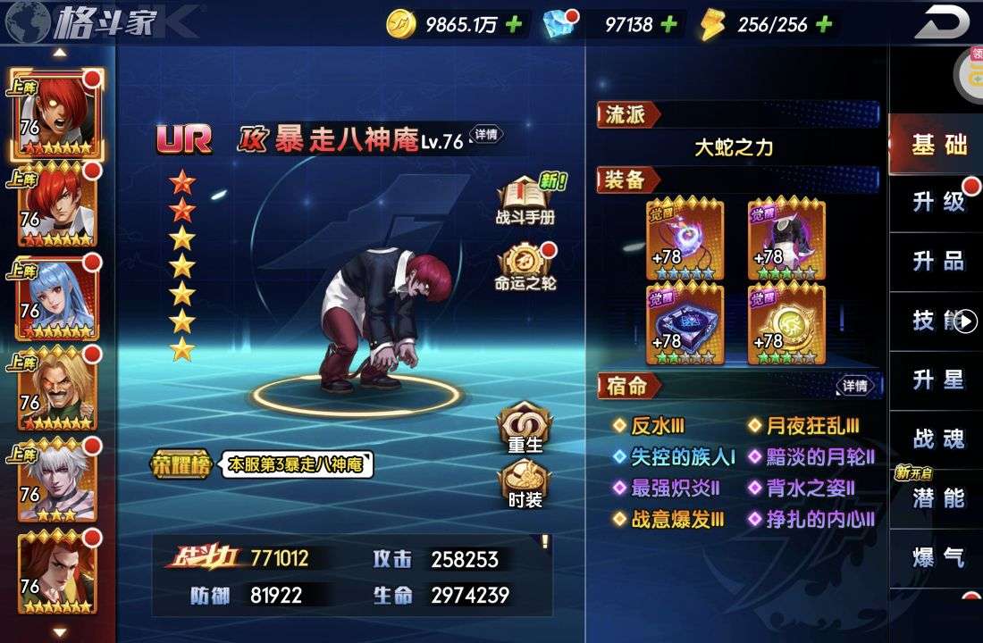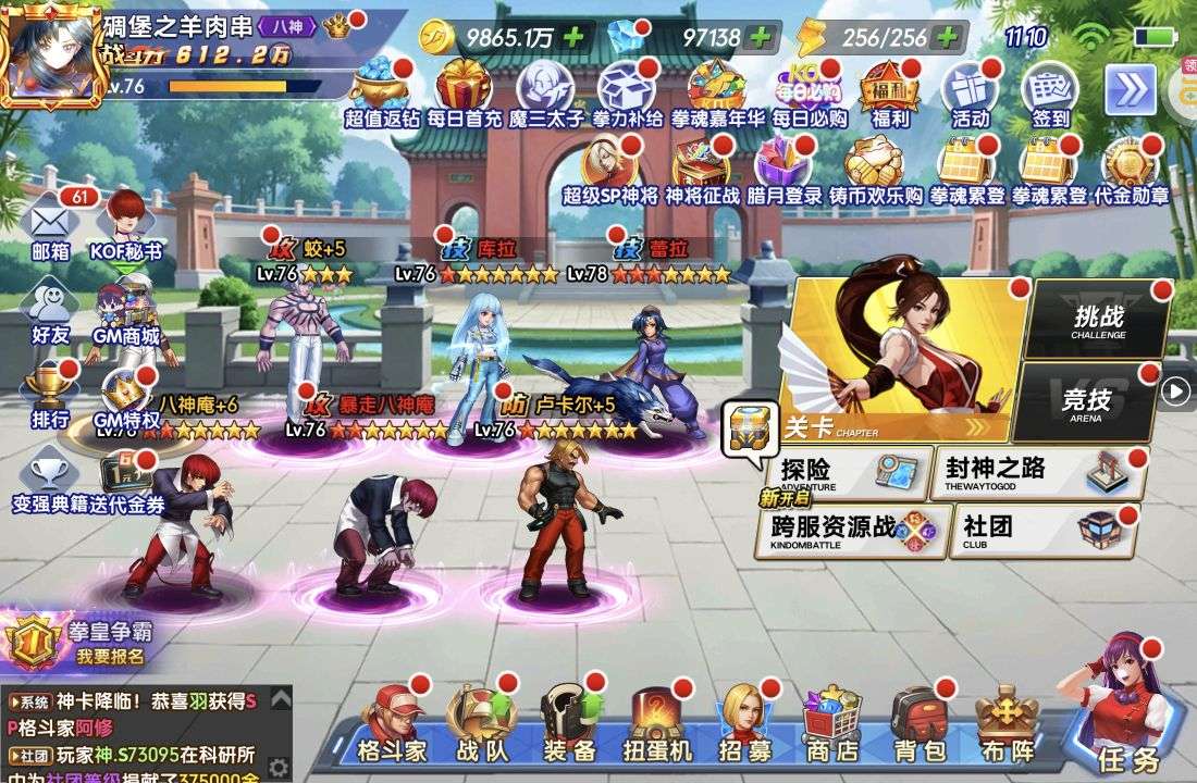什么都有,有千草四郎,有八神有草薙还开通了宗师勋章。顶级号,什么都有