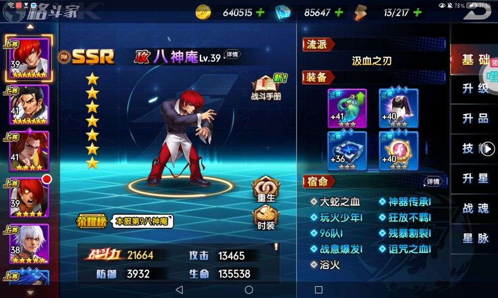 什么都有,有千草四郎,有八神有草薙还开通了宗师勋章。顶级号,什么都有