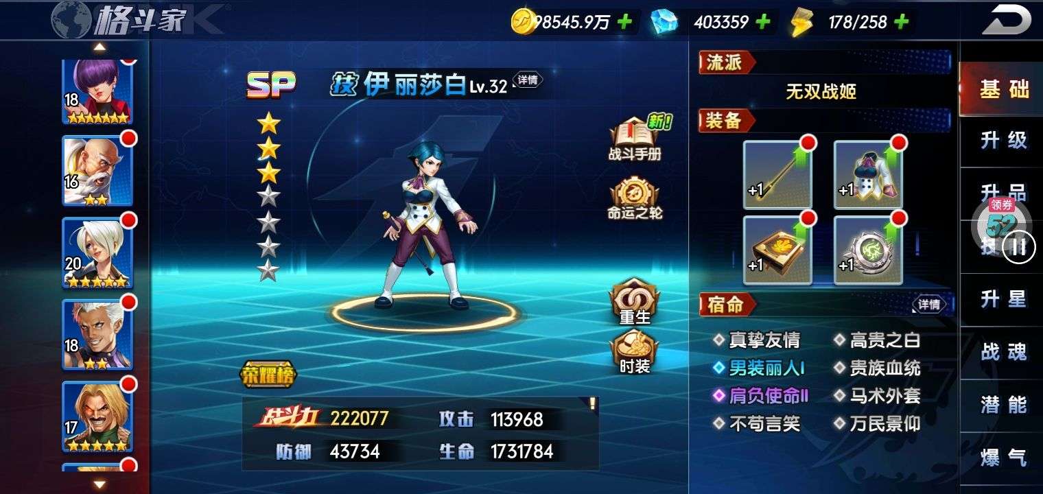 SP都有 紫苑沙白蛟空手阿修快5星 还有4800代金 特权全开了 战力是没上宝石 特意控战的 1000万以下没无界随便打 6星斋祀带3武器