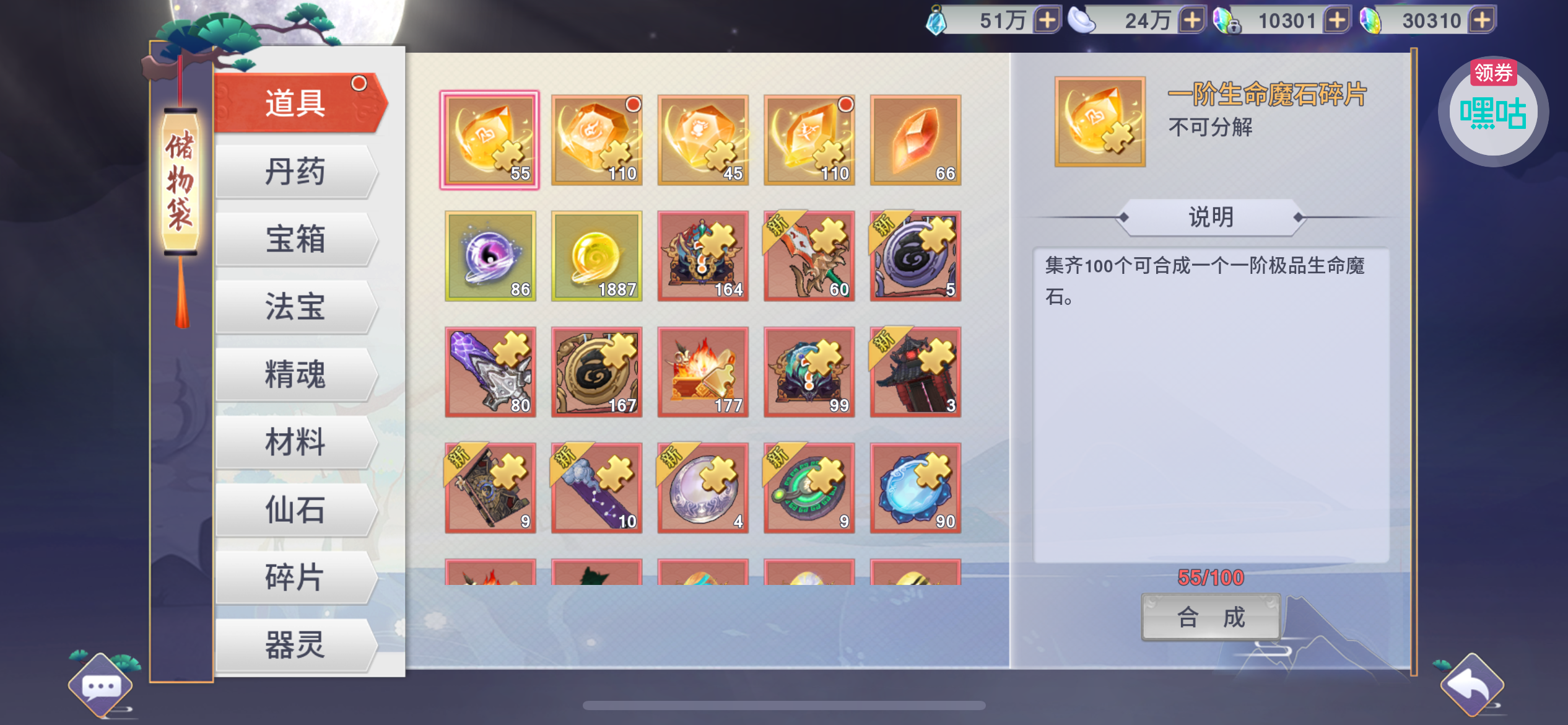 魂晶*888,魂师召唤券*10,武魂水晶*5(每个账号限领一次)