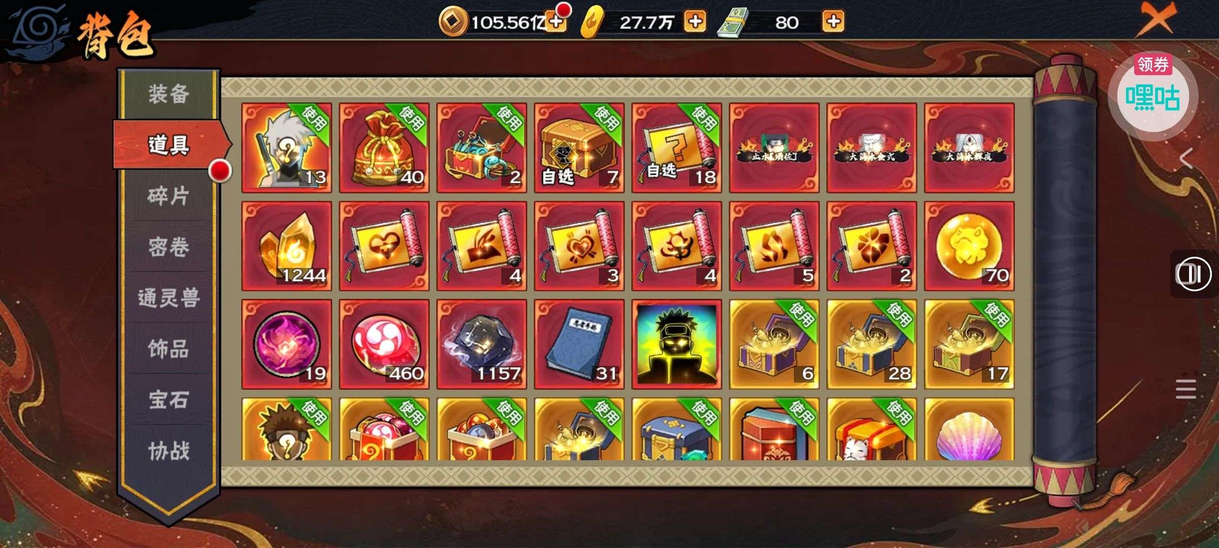 夺宝券*1、比武令*1、5星随机将魂*10(每个账号限领一次)