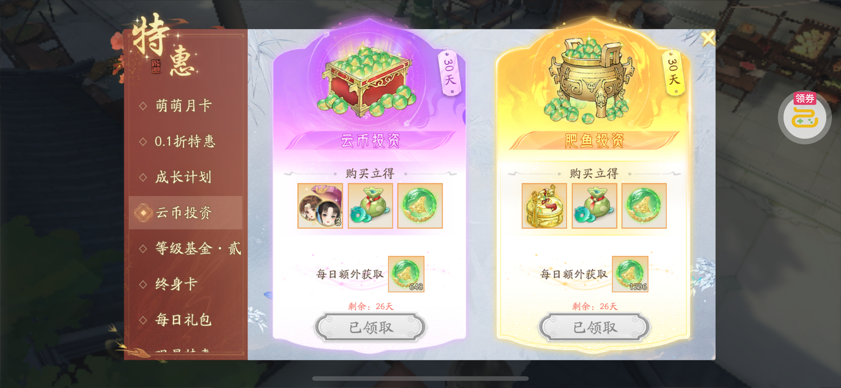 夺宝券*1、比武令*1、5星随机将魂*10(每个账号限领一次)