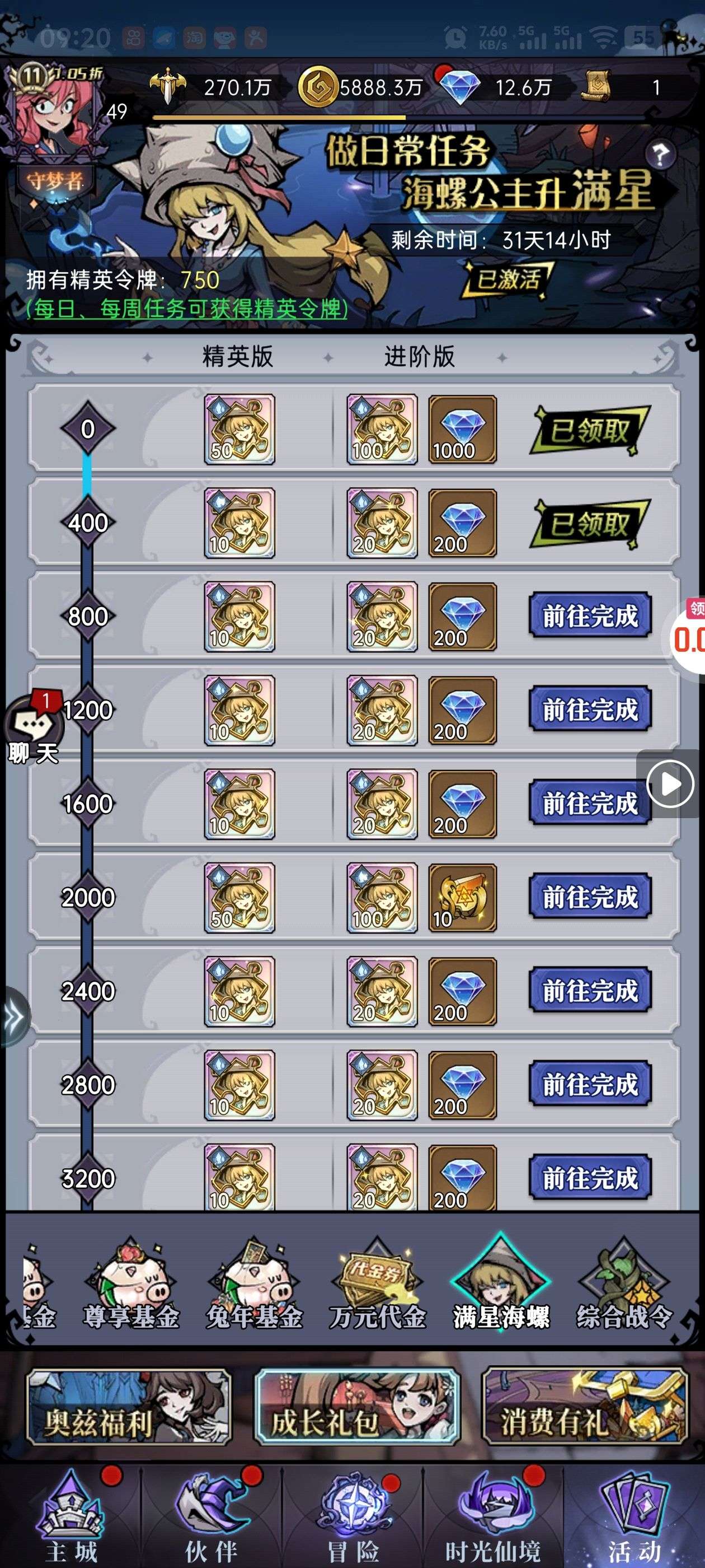 新号刚玩三天,花二十多,一堆活动懒得玩了。