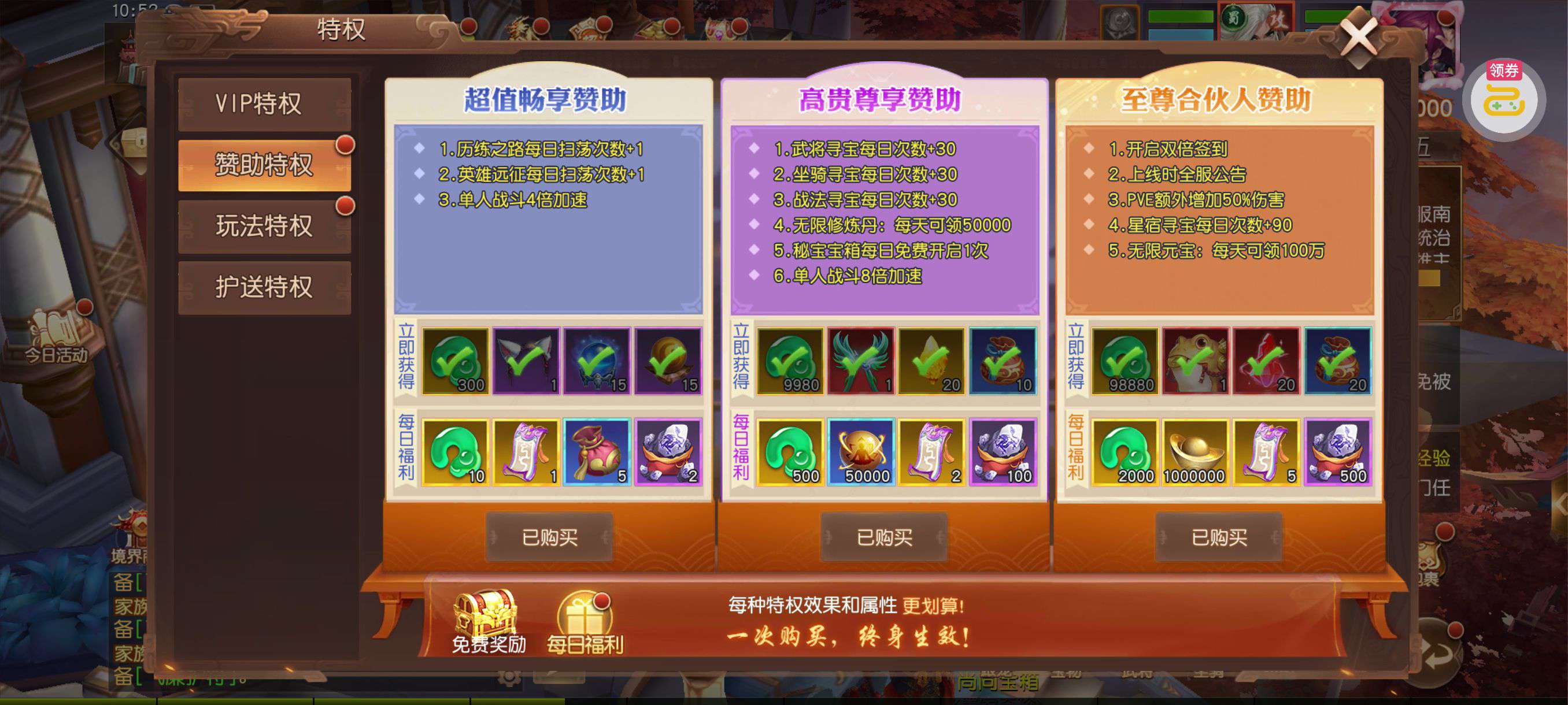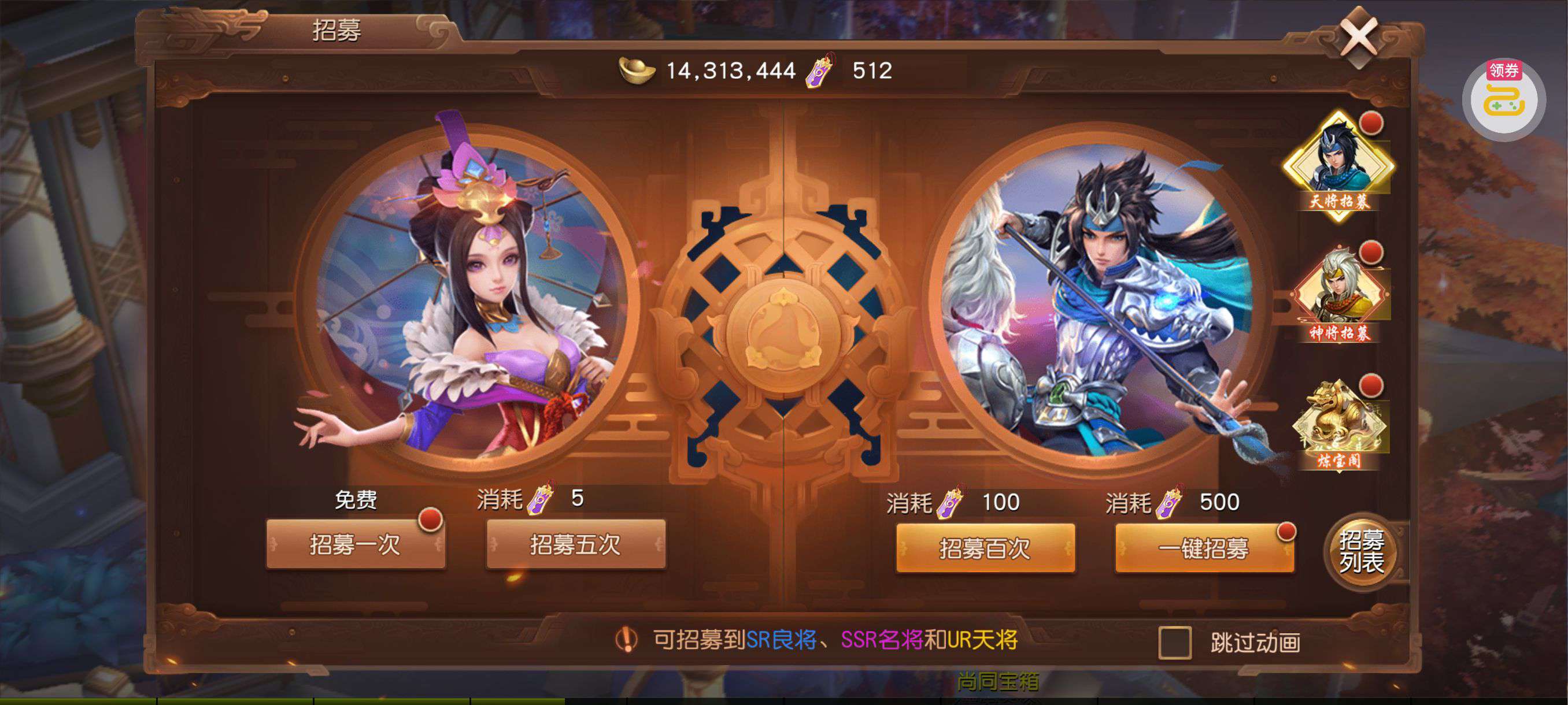 夺宝券*1、比武令*1、5星随机将魂*10(每个账号限领一次)