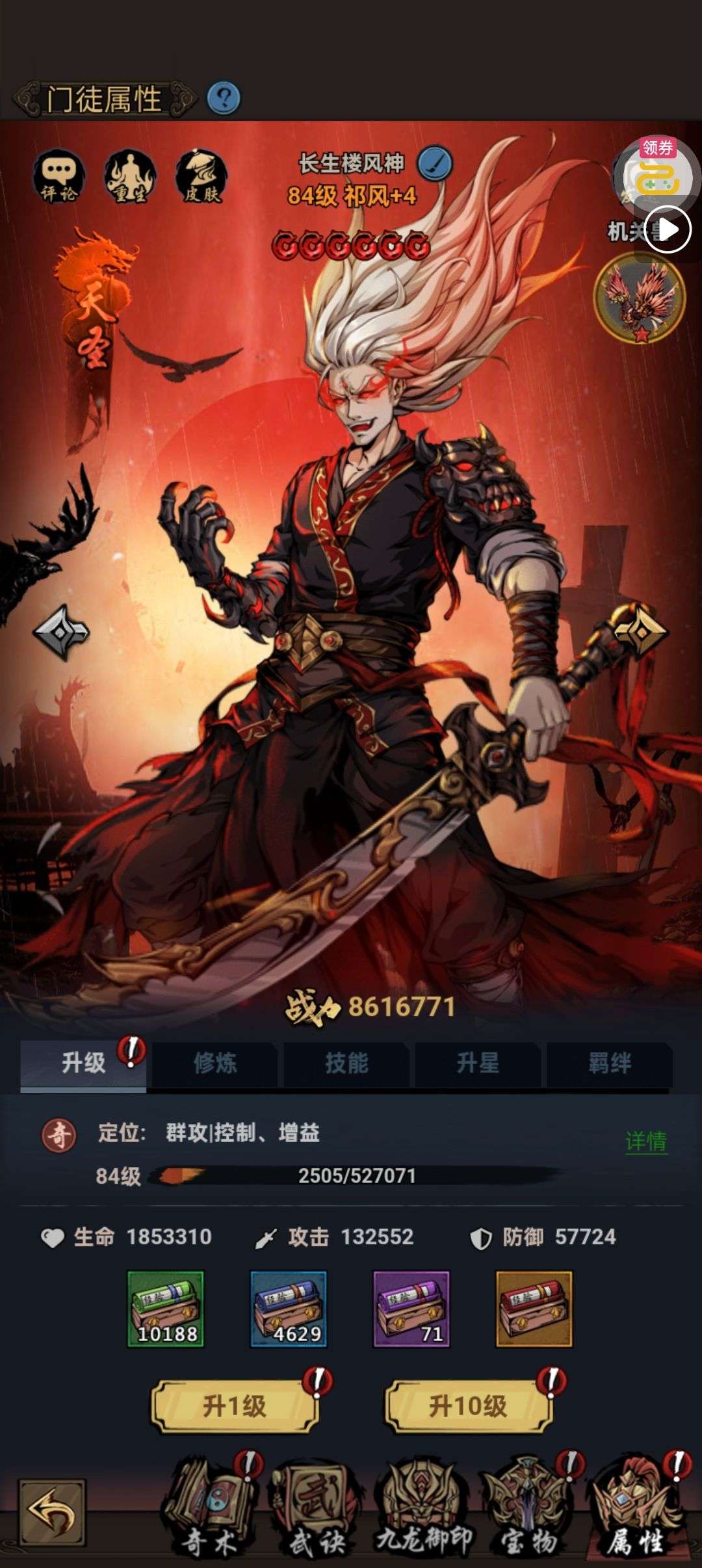 夺宝券*1、比武令*1、5星随机将魂*10(每个账号限领一次)