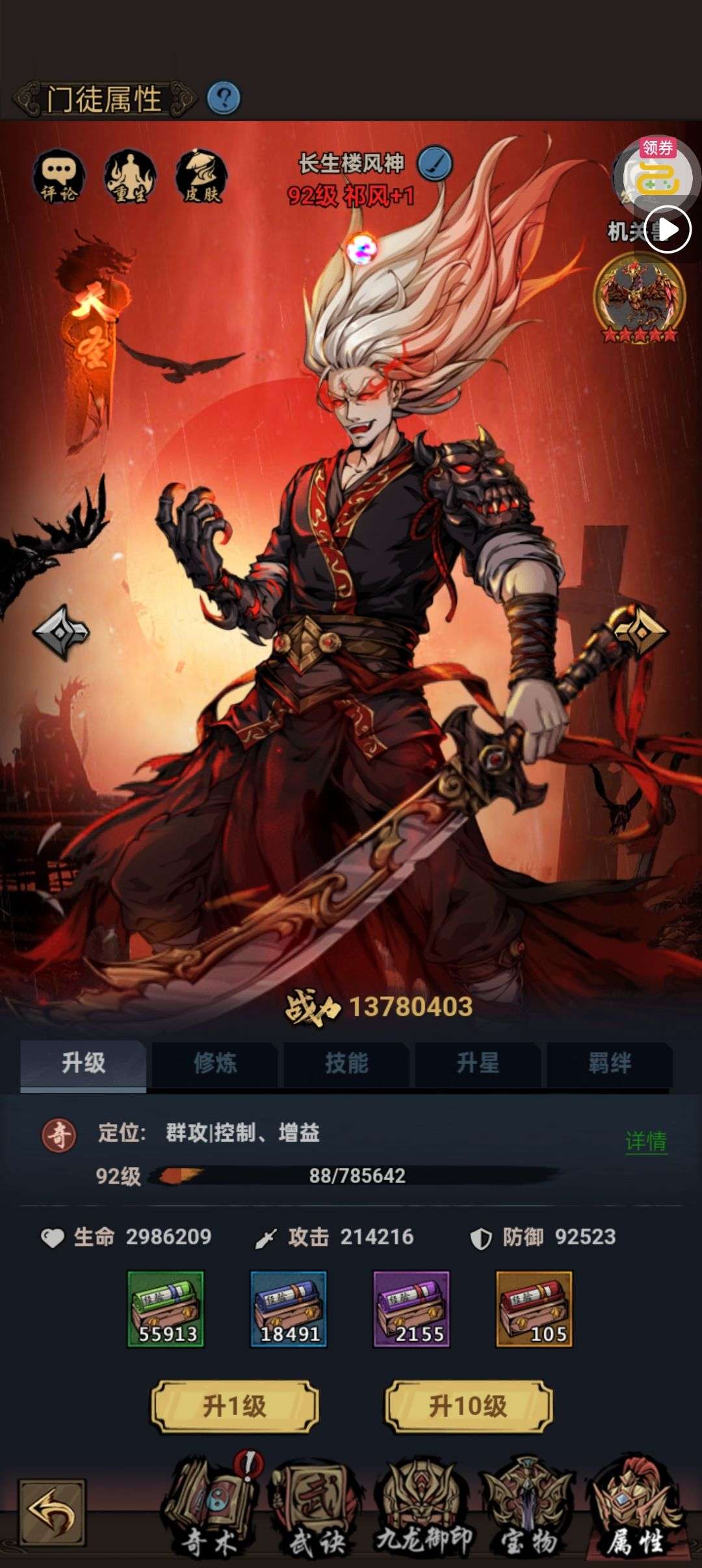 夺宝券*1、比武令*1、5星随机将魂*10(每个账号限领一次)