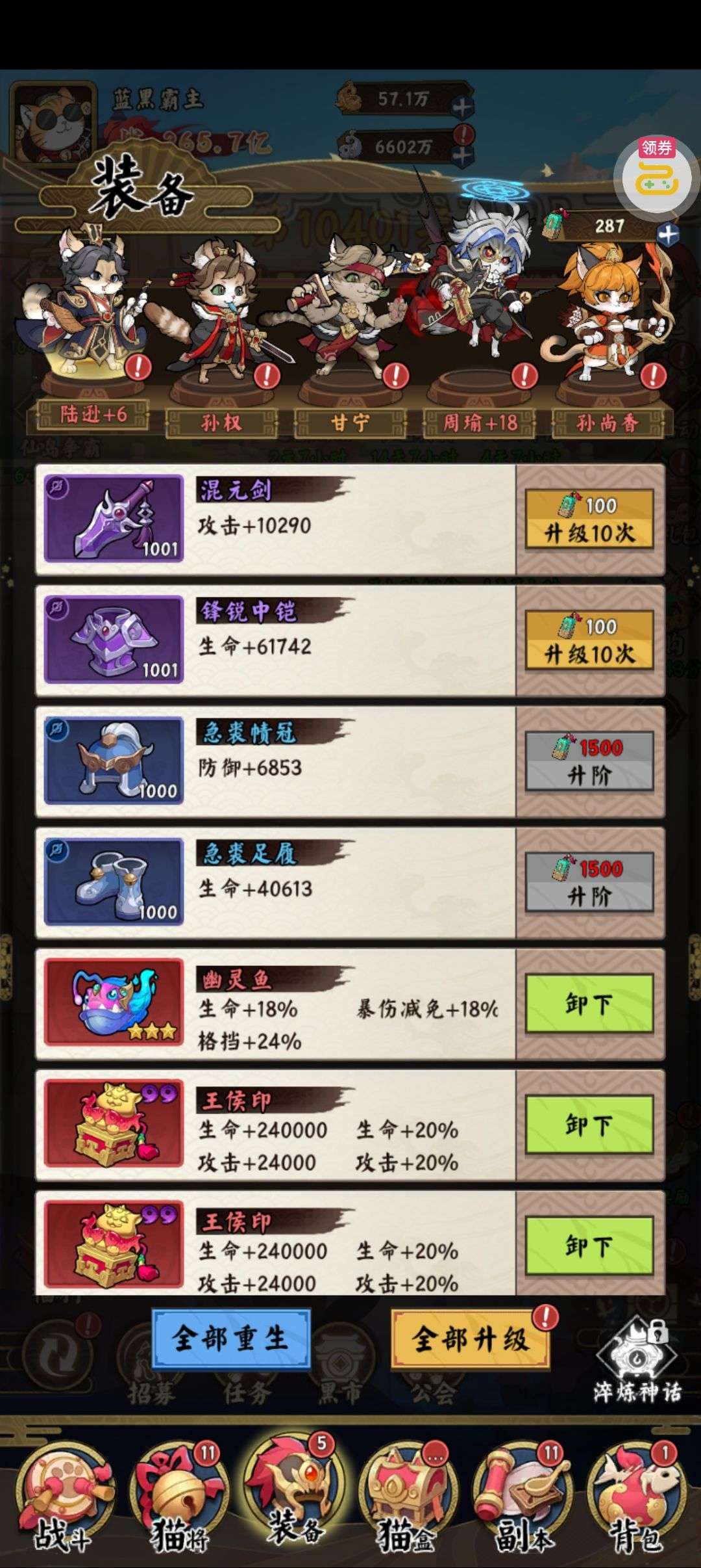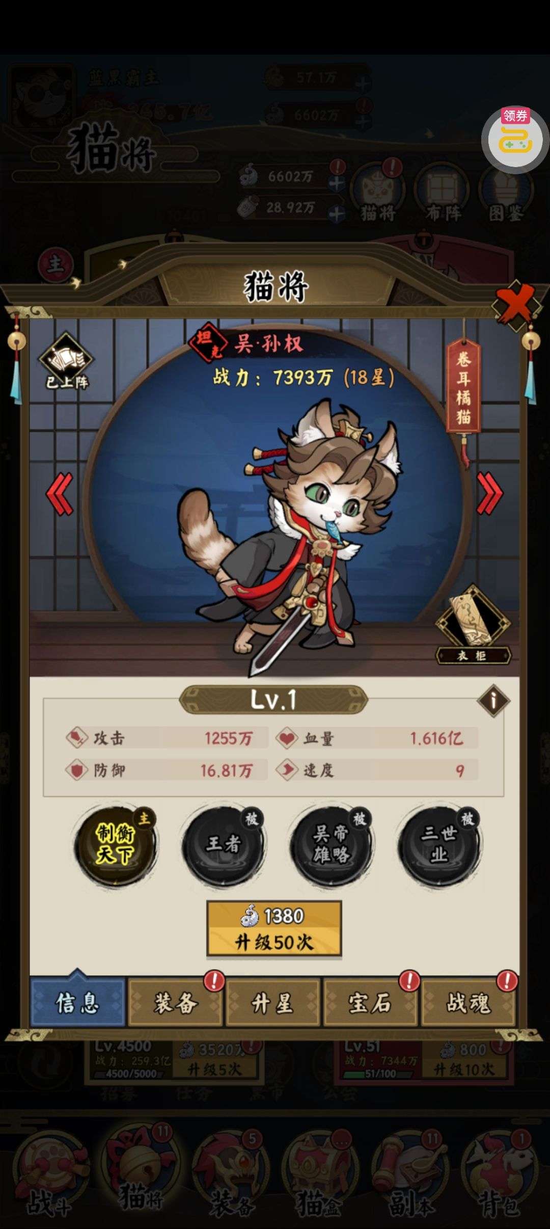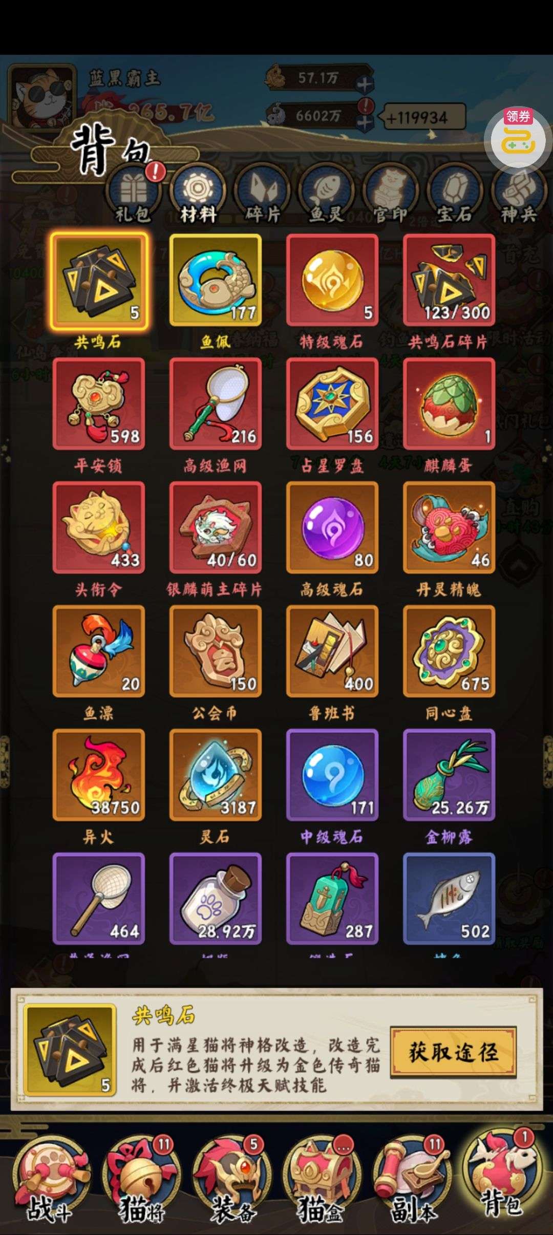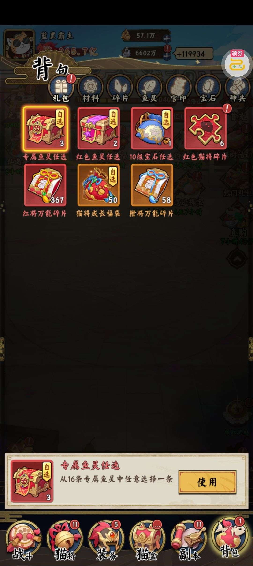 夺宝券*1、比武令*1、5星随机将魂*10(每个账号限领一次)