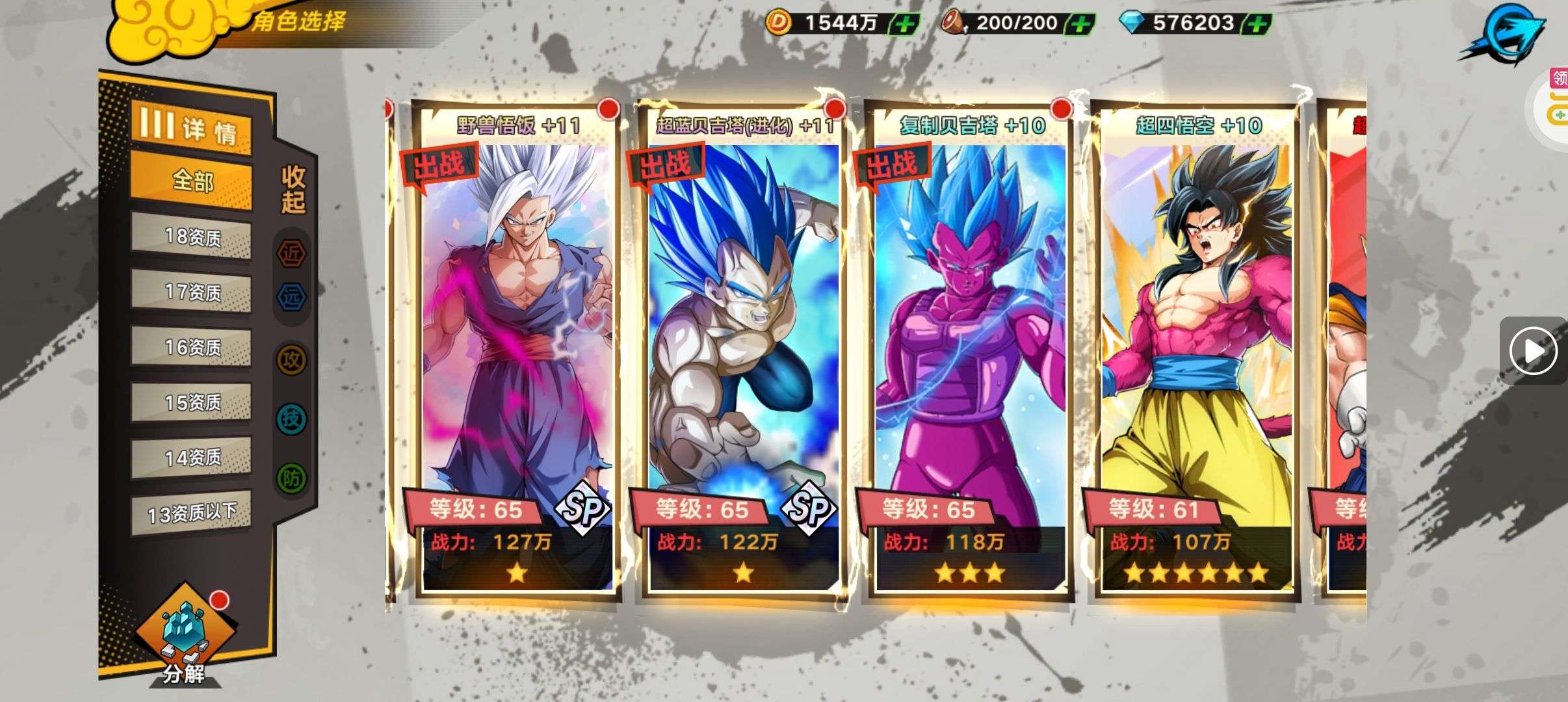 总战力:2323.9万 金币:5417万 钻石:27031 代金券:19666 可201次抽sp角色