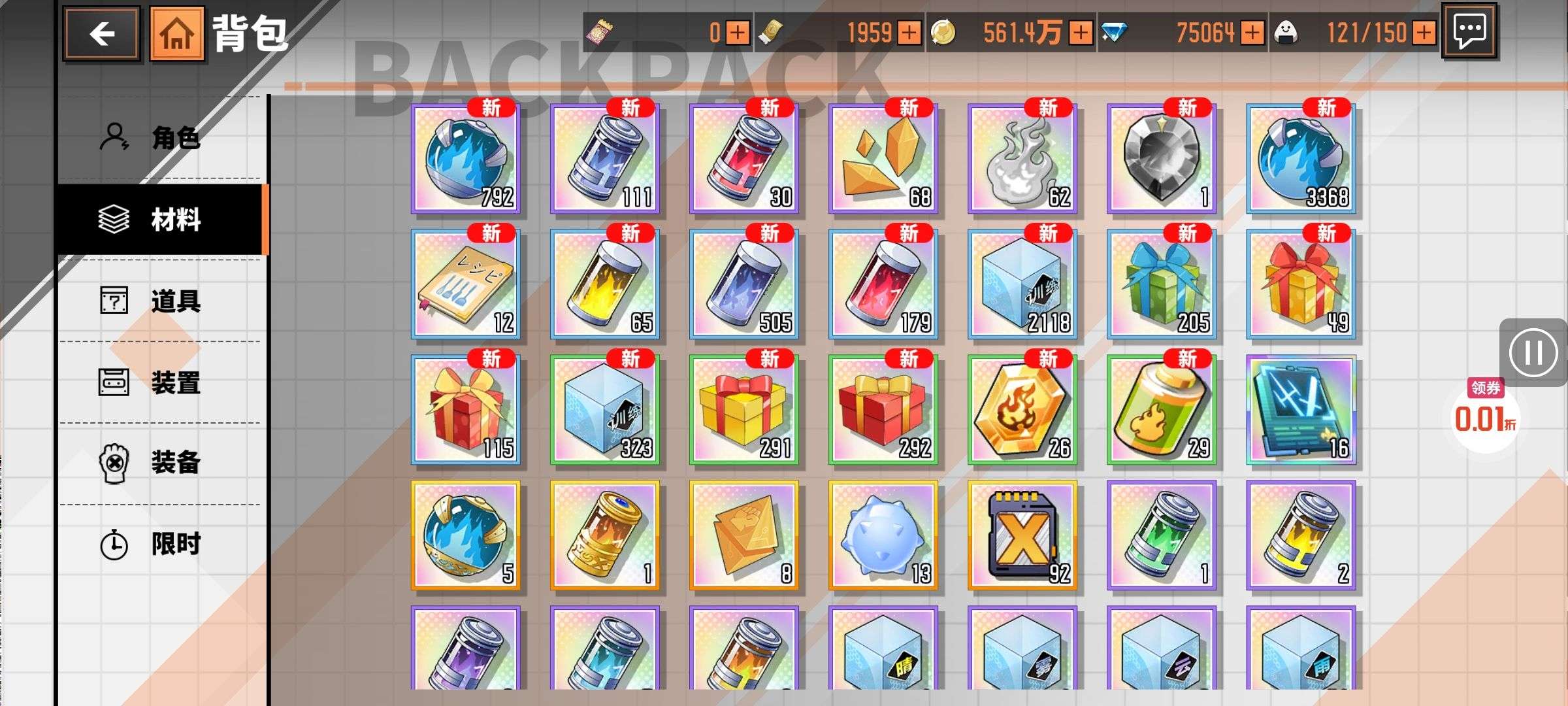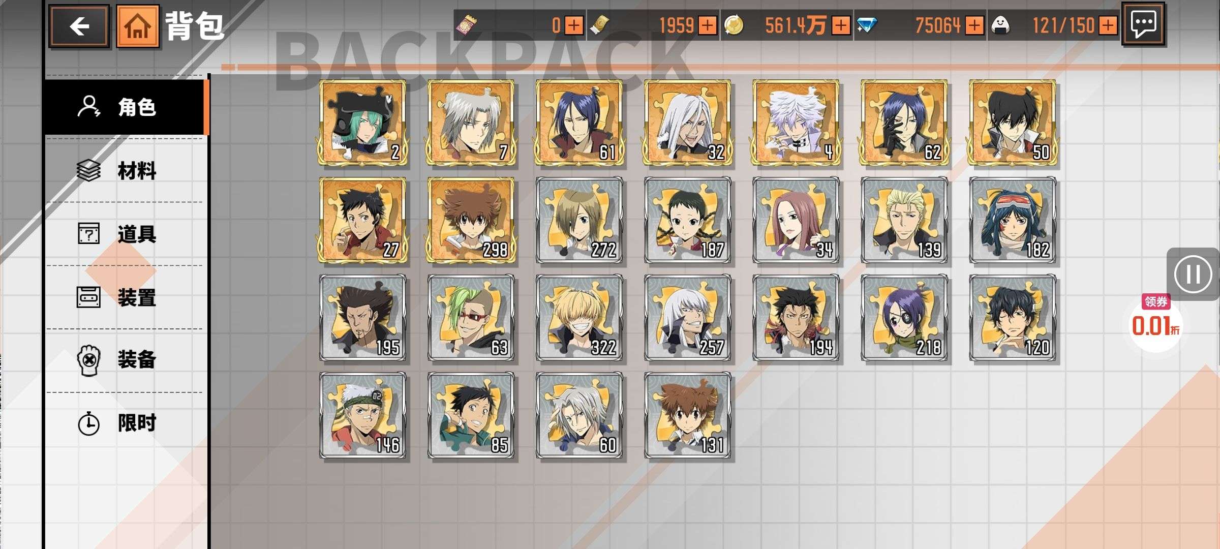 47级好几个ssr还有20万钻石每天可以领取五六百的券➕648券