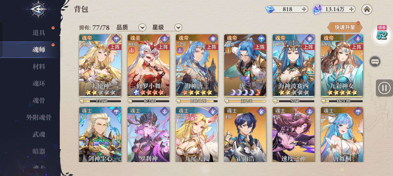 号主已退游,目前6000多万战力,还有好多能升级的号主没升。