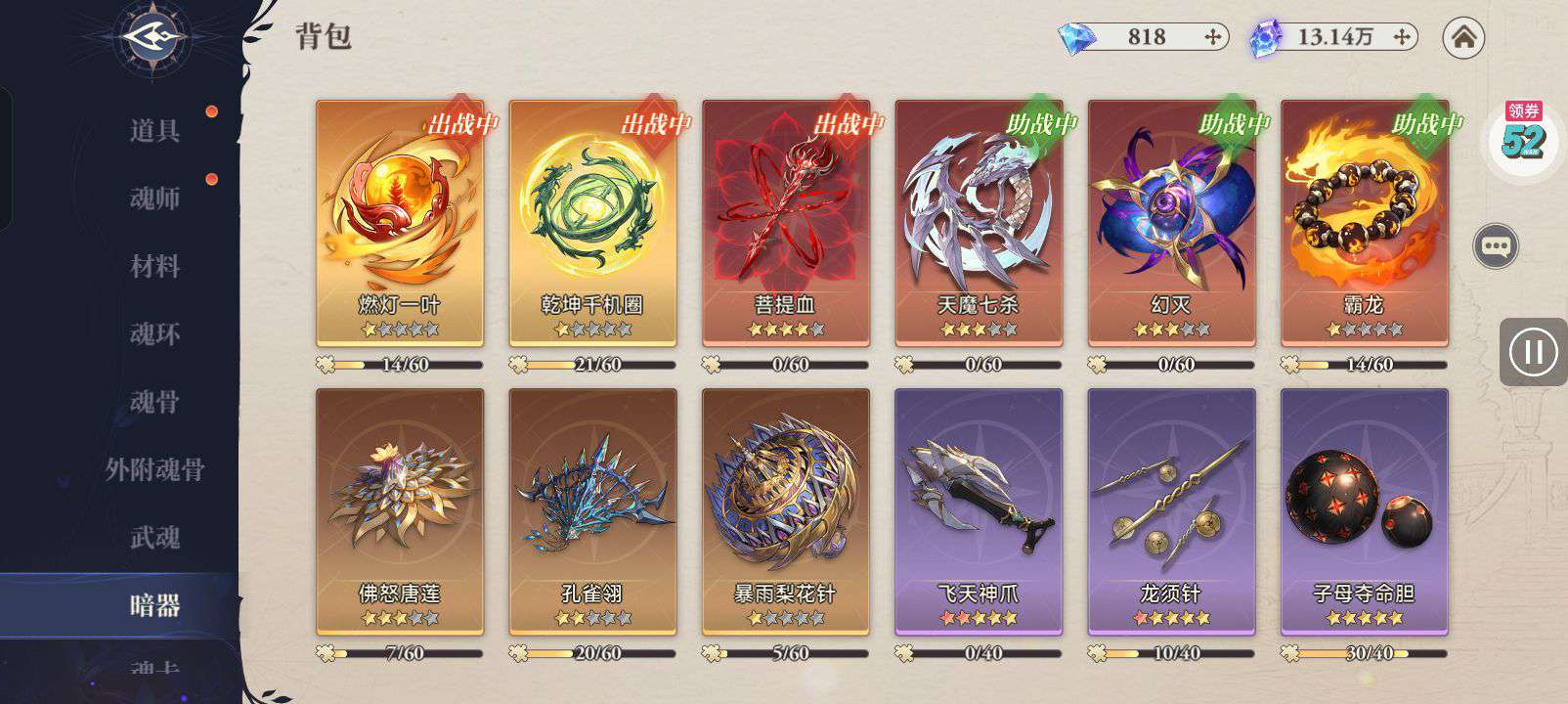魂师搭配和暗器这些都不错,开个卡就能玩,还是很划算的