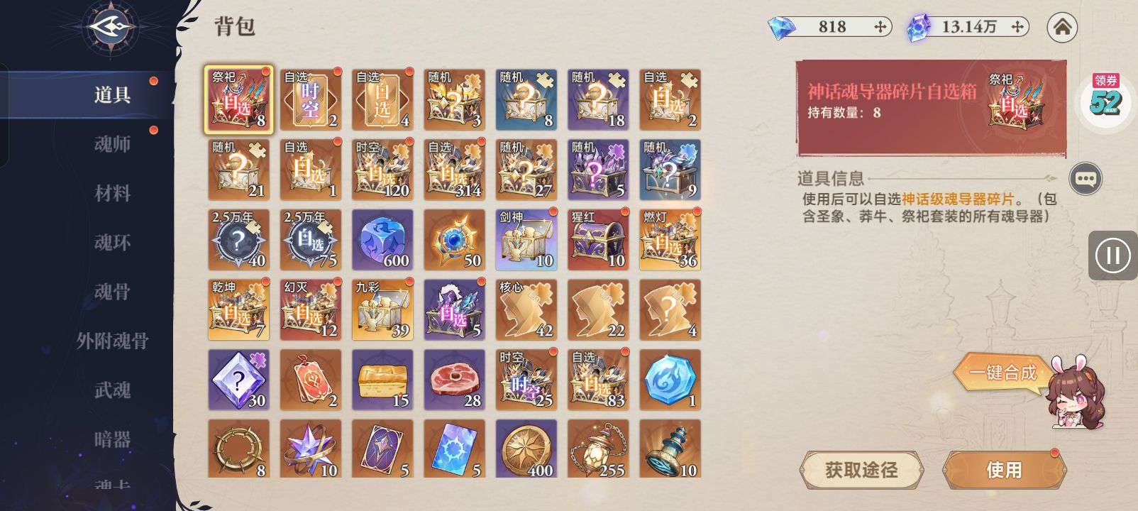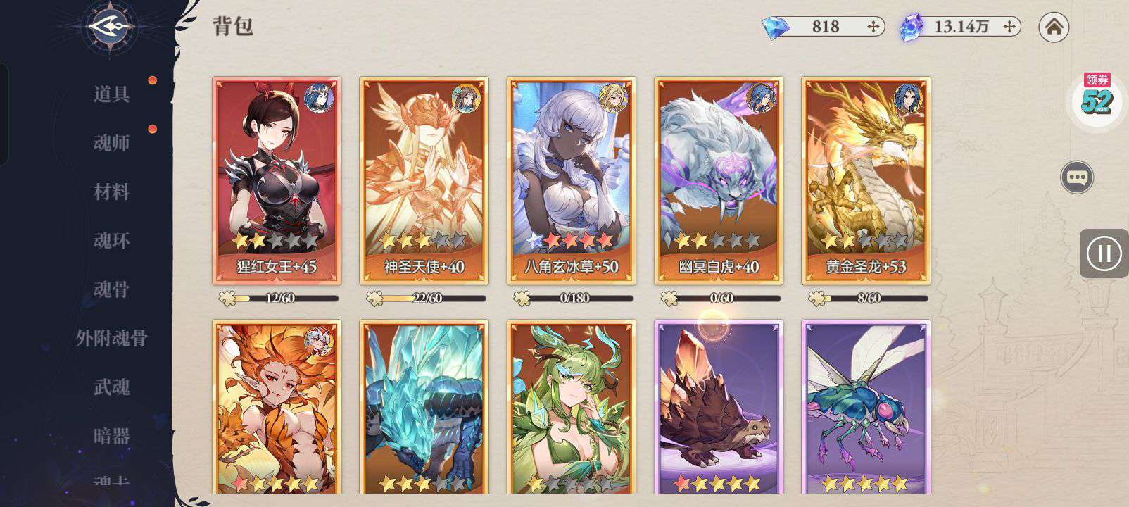 魂晶*888,魂师召唤券*10,武魂水晶*5(每个账号限领一次)