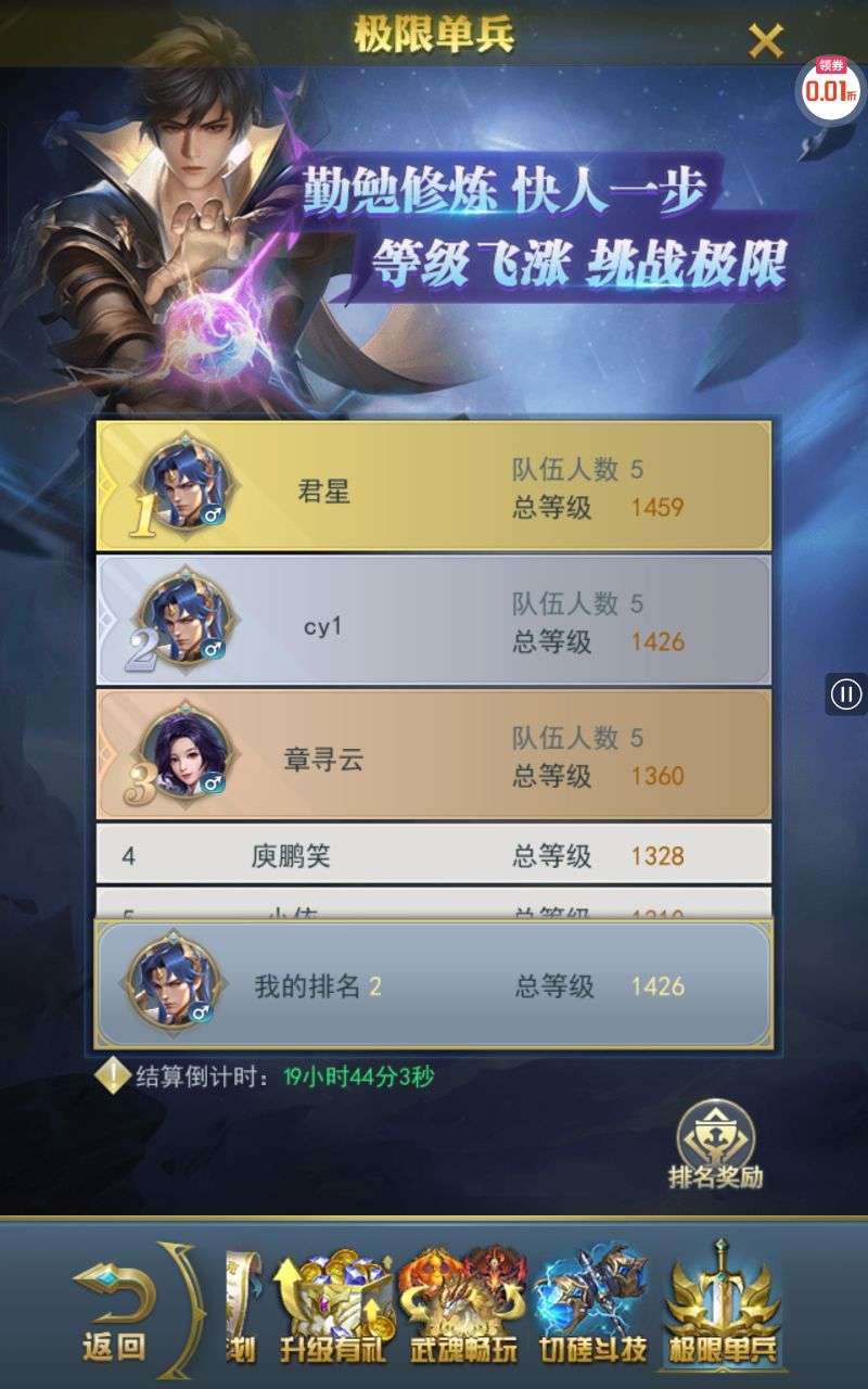 夺宝券*1、比武令*1、5星随机将魂*10(每个账号限领一次)