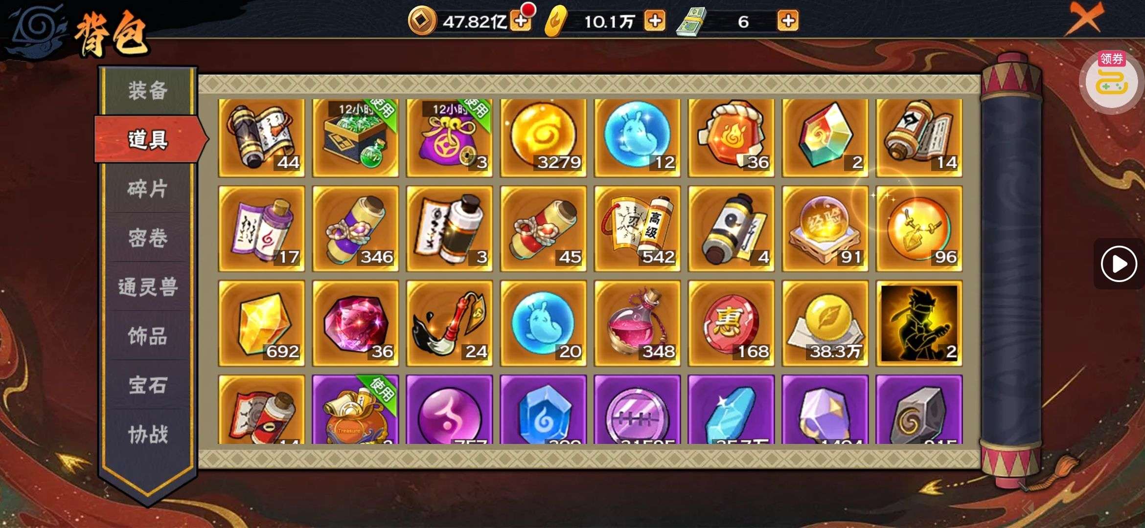 夺宝券*1、比武令*1、5星随机将魂*10(每个账号限领一次)