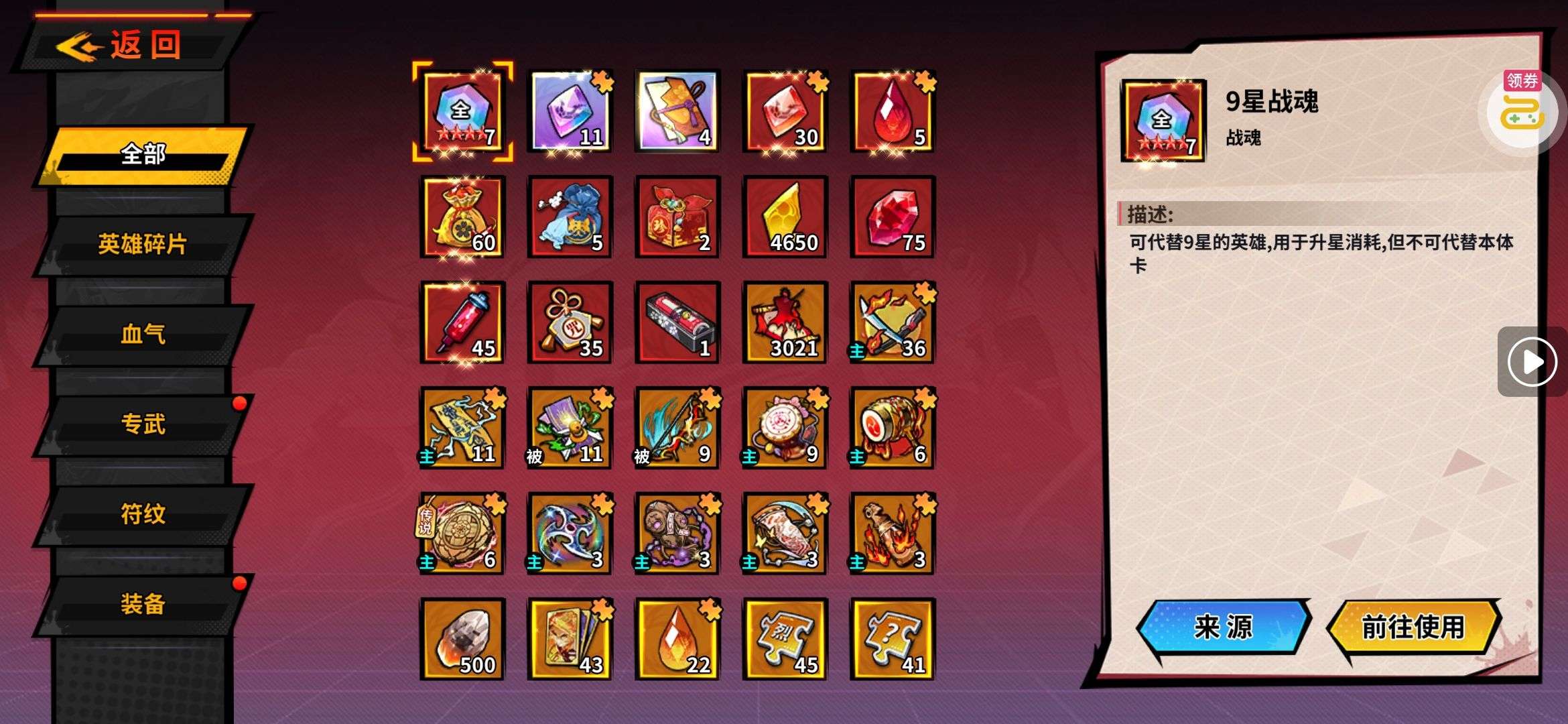夺宝券*1、比武令*1、5星随机将魂*10(每个账号限领一次)