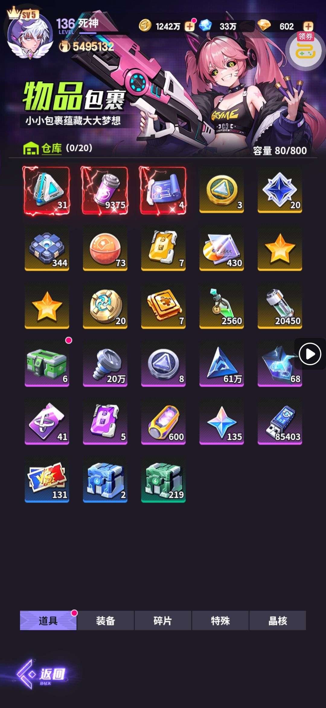 芯片熔炼石*1、离子探针*50、净化金属*50(每个账号限领一次)