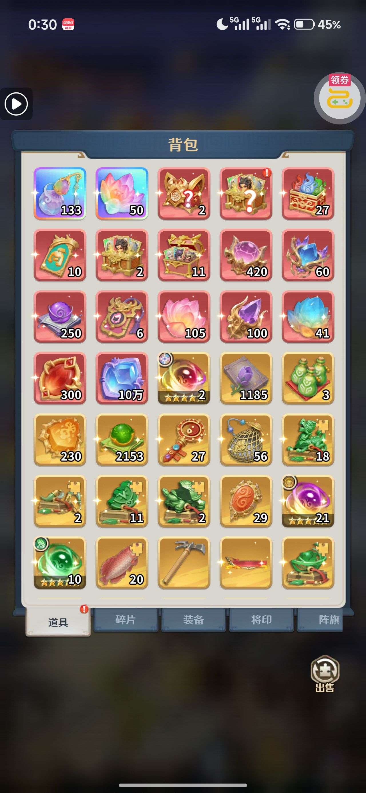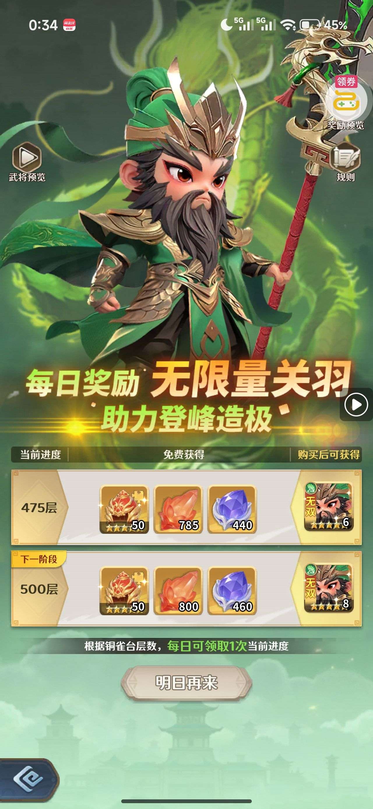 夺宝券*1、比武令*1、5星随机将魂*10(每个账号限领一次)