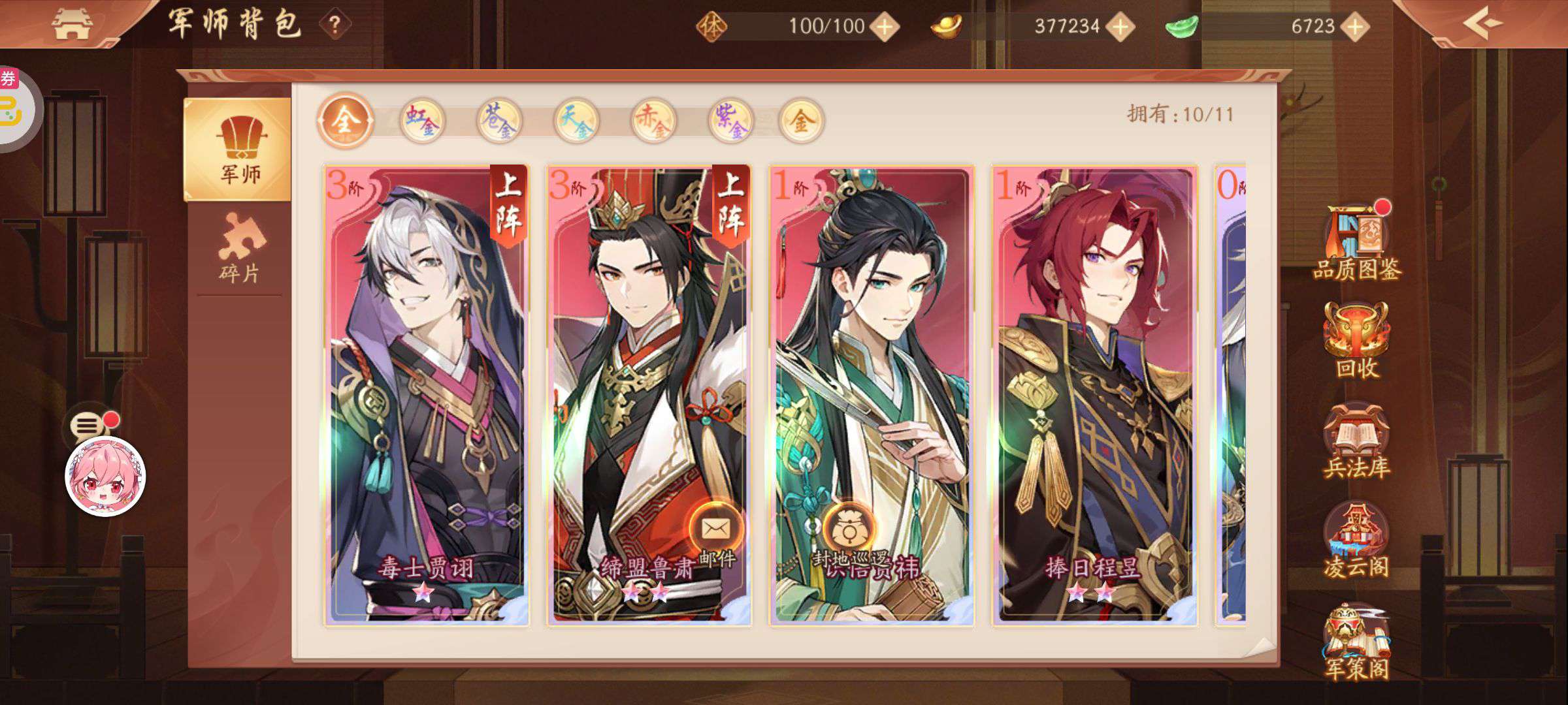 便宜出了,虹金军师,虹金红颜,都是最新的,新联动活动刚开,可以白嫖一个1星伏羲