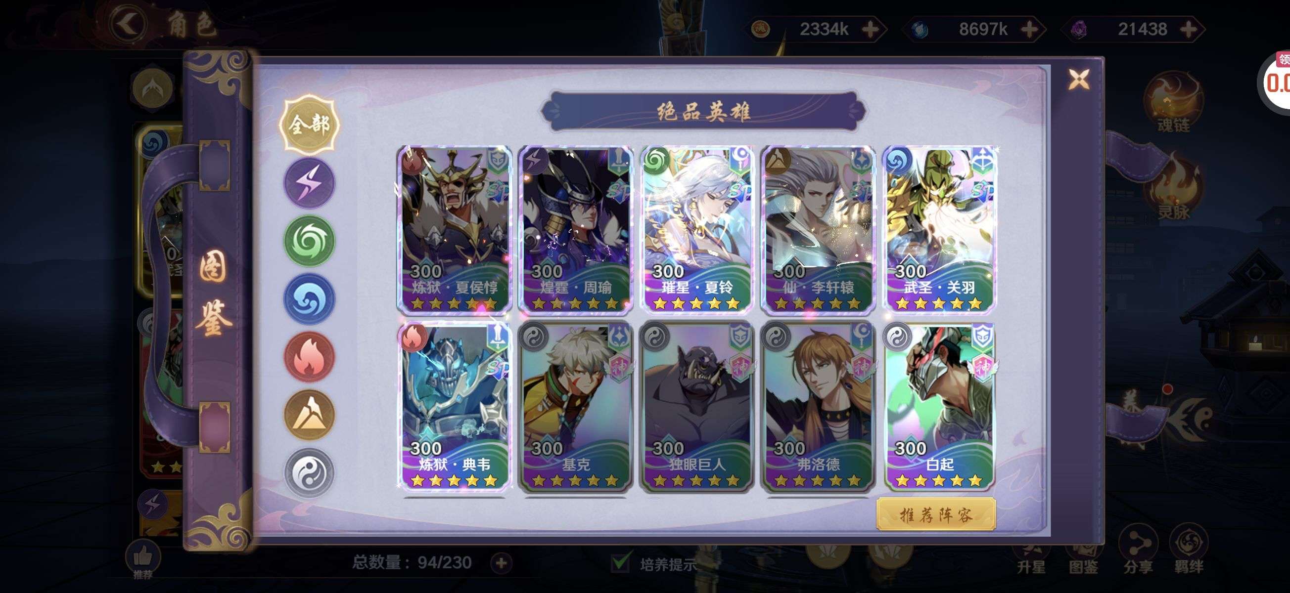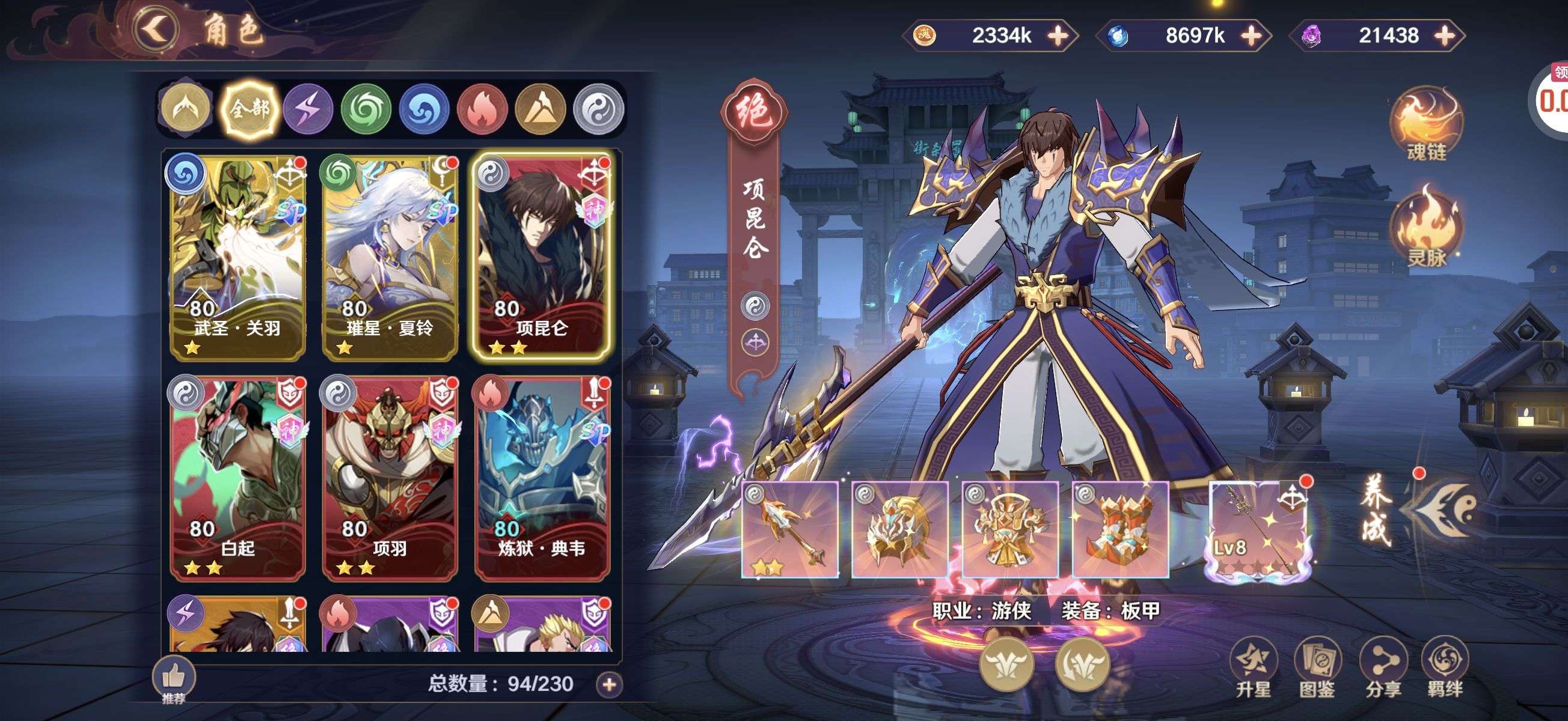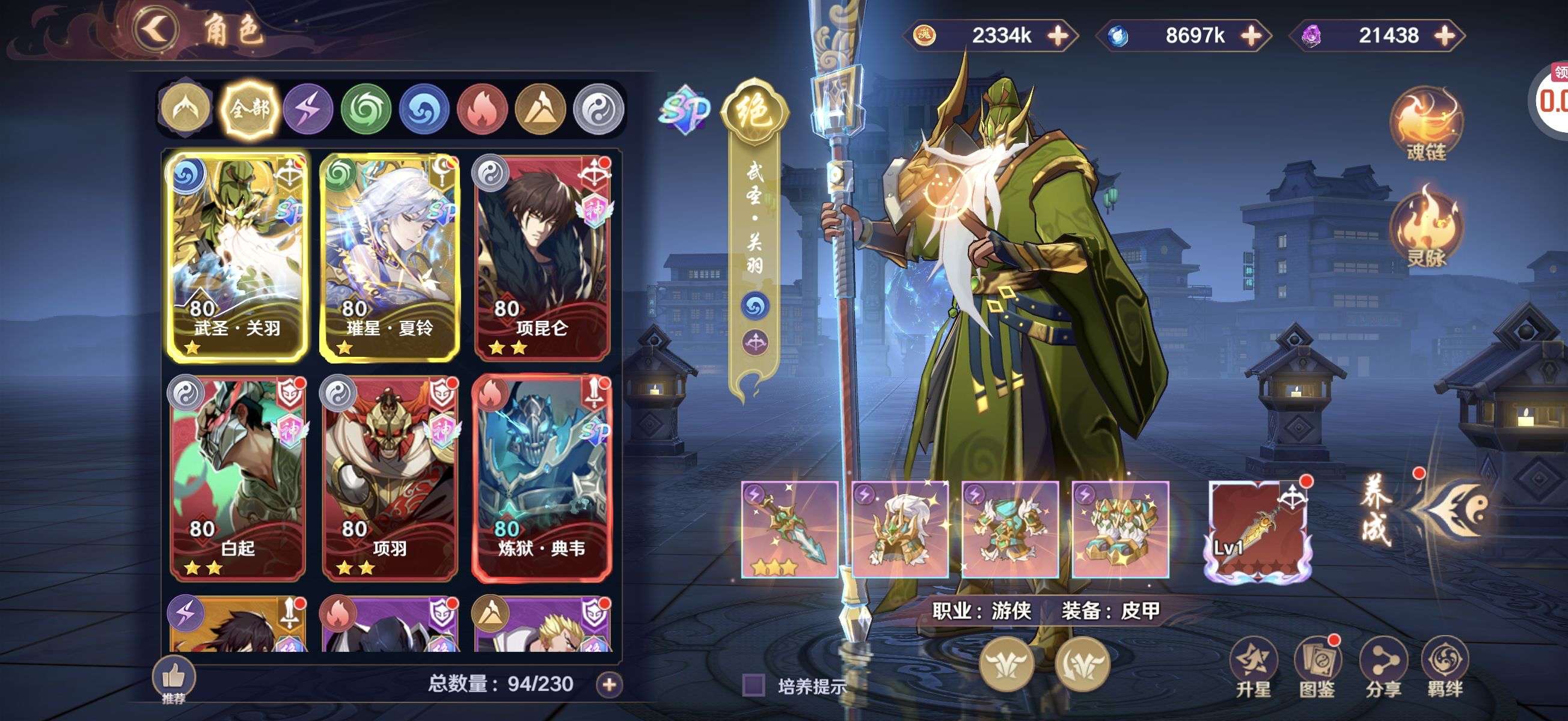 全金将武神关羽,璀星夏玲,炼狱典韦,项羽,白起,项王,诸葛亮,张飞