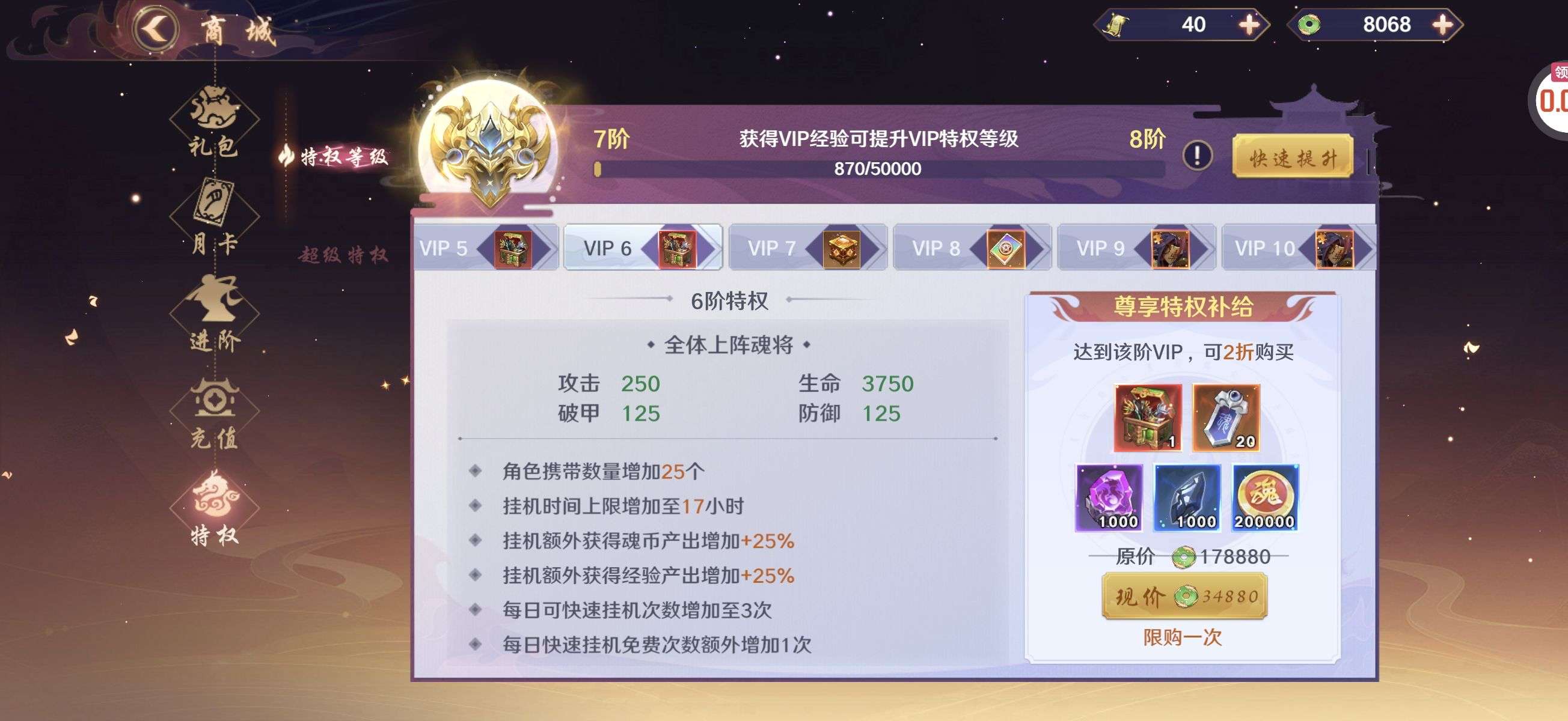 夺宝券*1、比武令*1、5星随机将魂*10(每个账号限领一次)