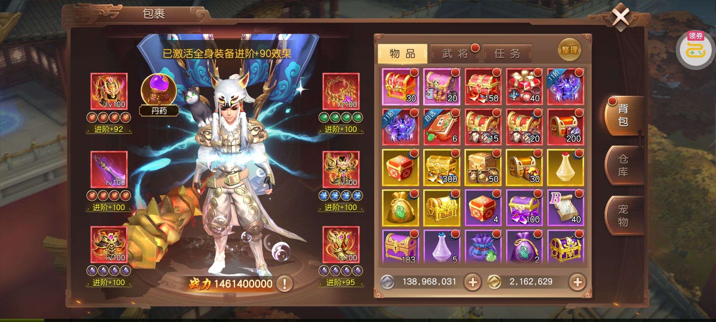 夺宝券*1、比武令*1、5星随机将魂*10(每个账号限领一次)