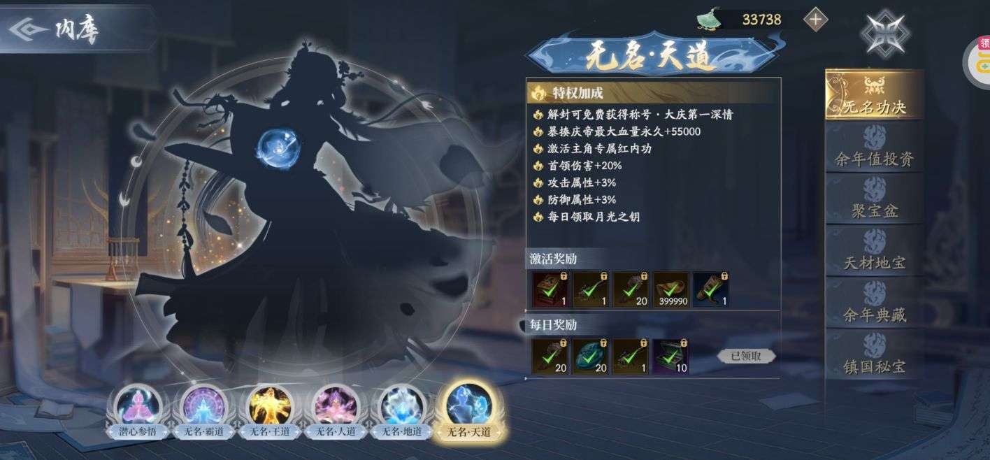 v13,888特权,暴打庆帝拉满了,五红内功,该有的都有了,就卖个战力,