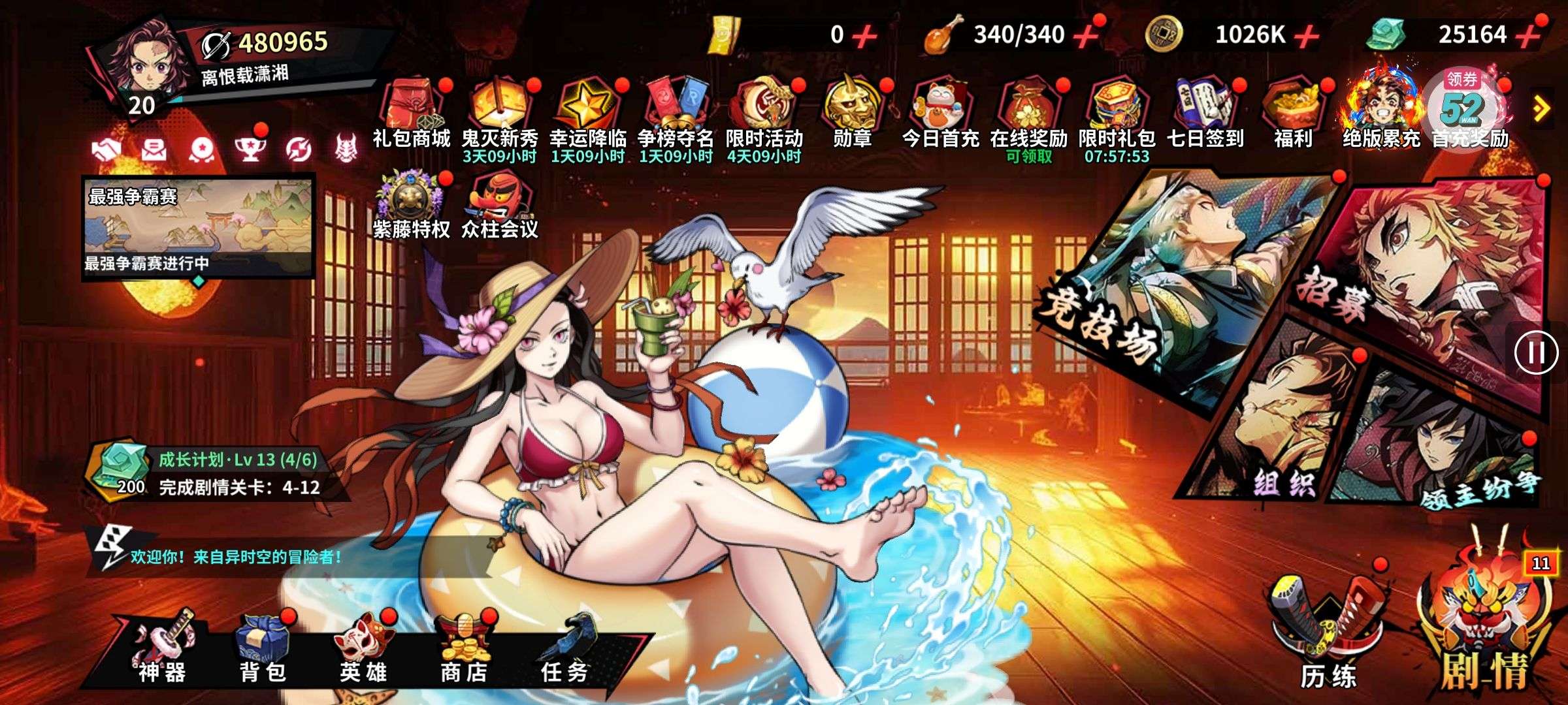 夺宝券*1、比武令*1、5星随机将魂*10(每个账号限领一次)