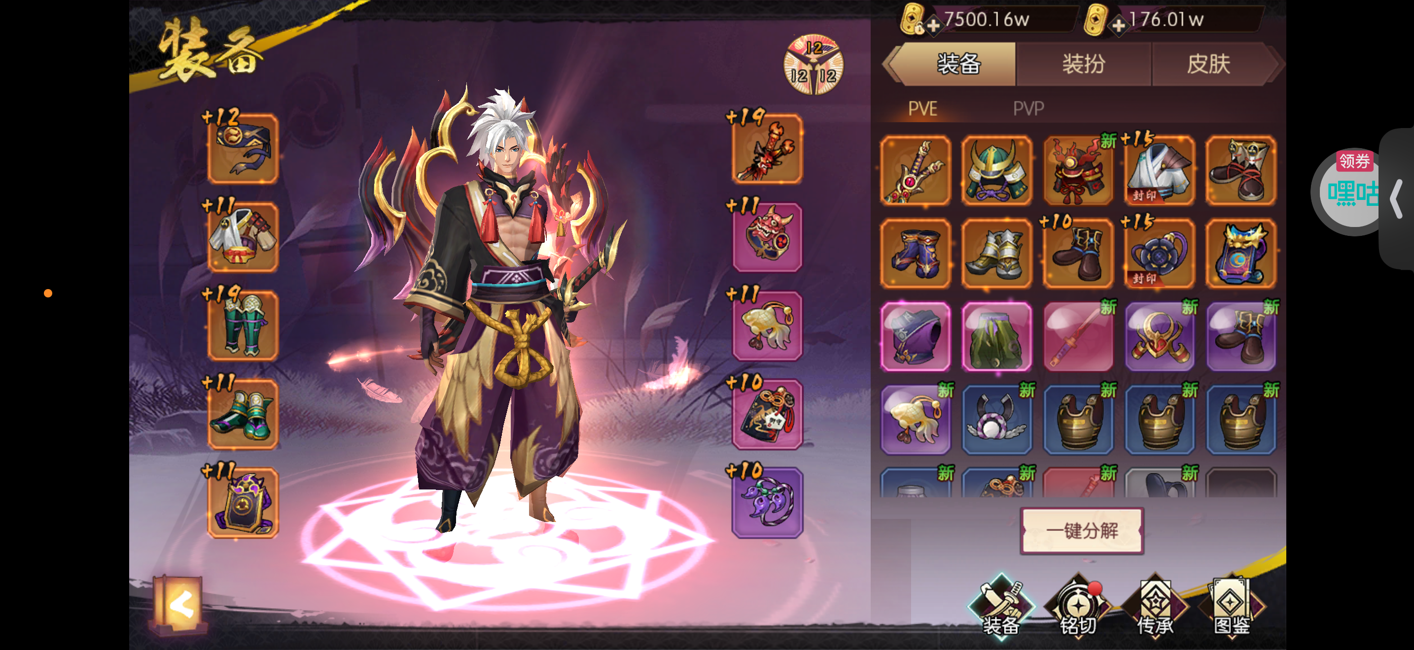 19武器5200代金1万5勾玉。天空套