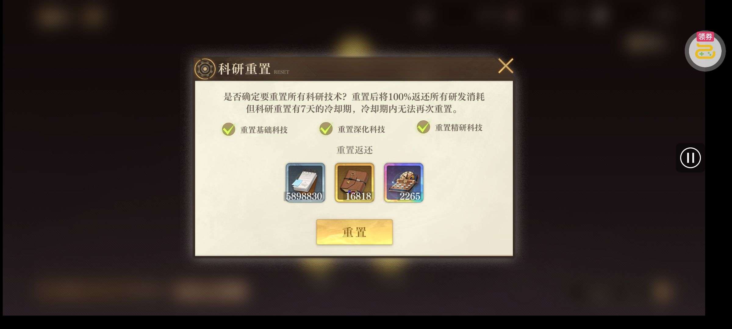 芯片熔炼石*1、离子探针*50、净化金属*50(每个账号限领一次)