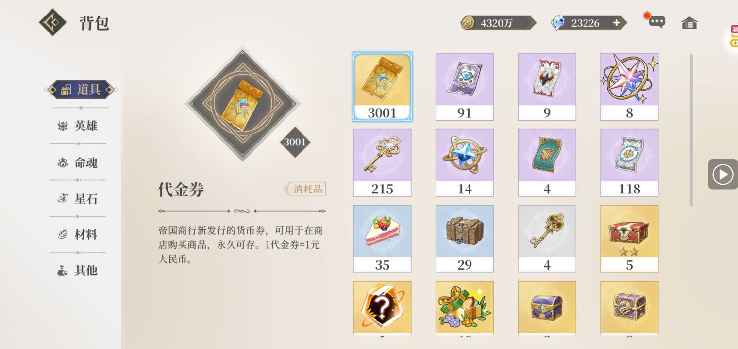 夺宝券*1、比武令*1、5星随机将魂*10(每个账号限领一次)