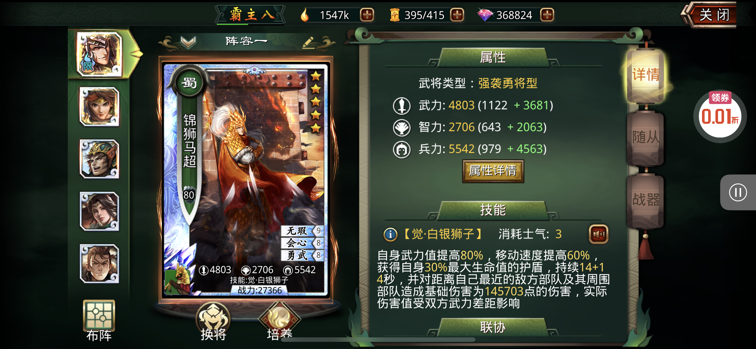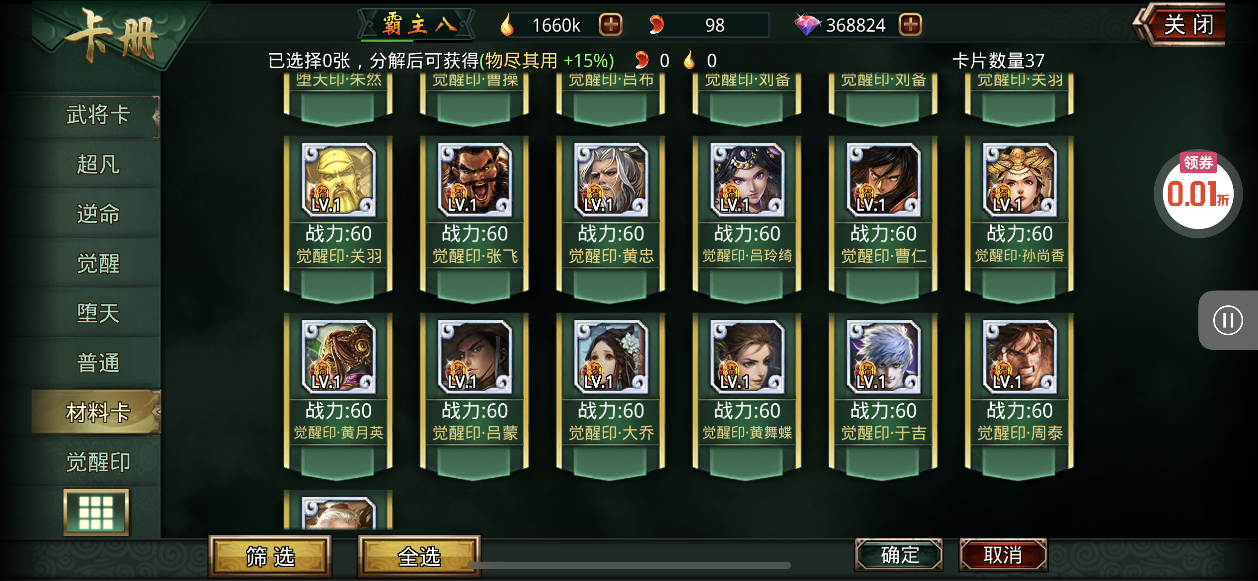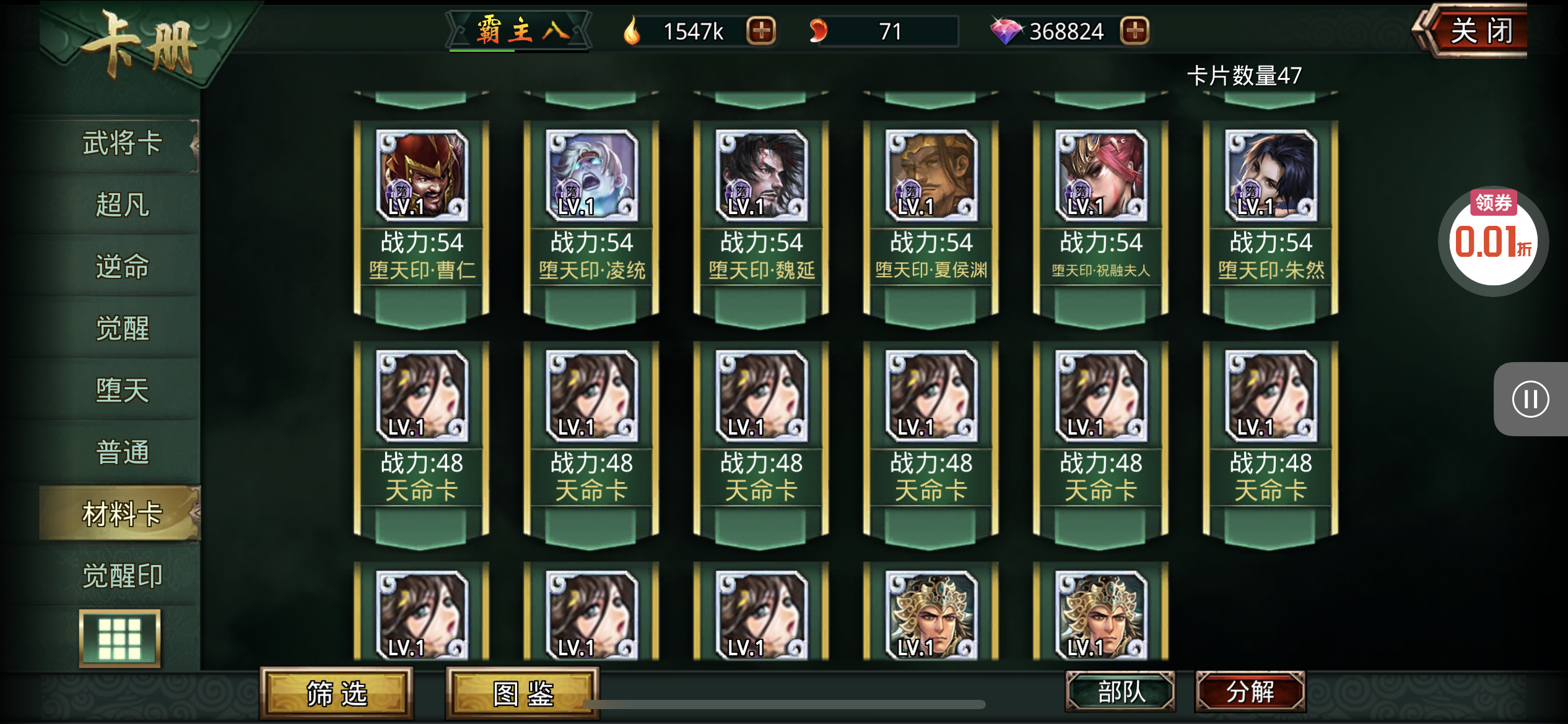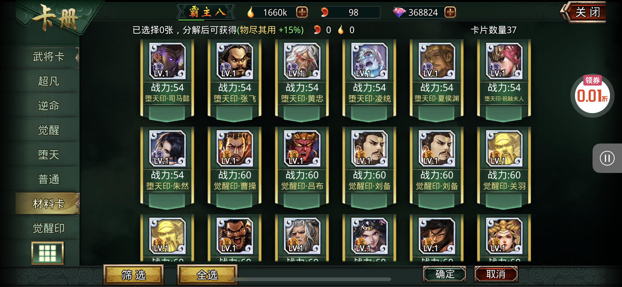 夺宝券*1、比武令*1、5星随机将魂*10(每个账号限领一次)