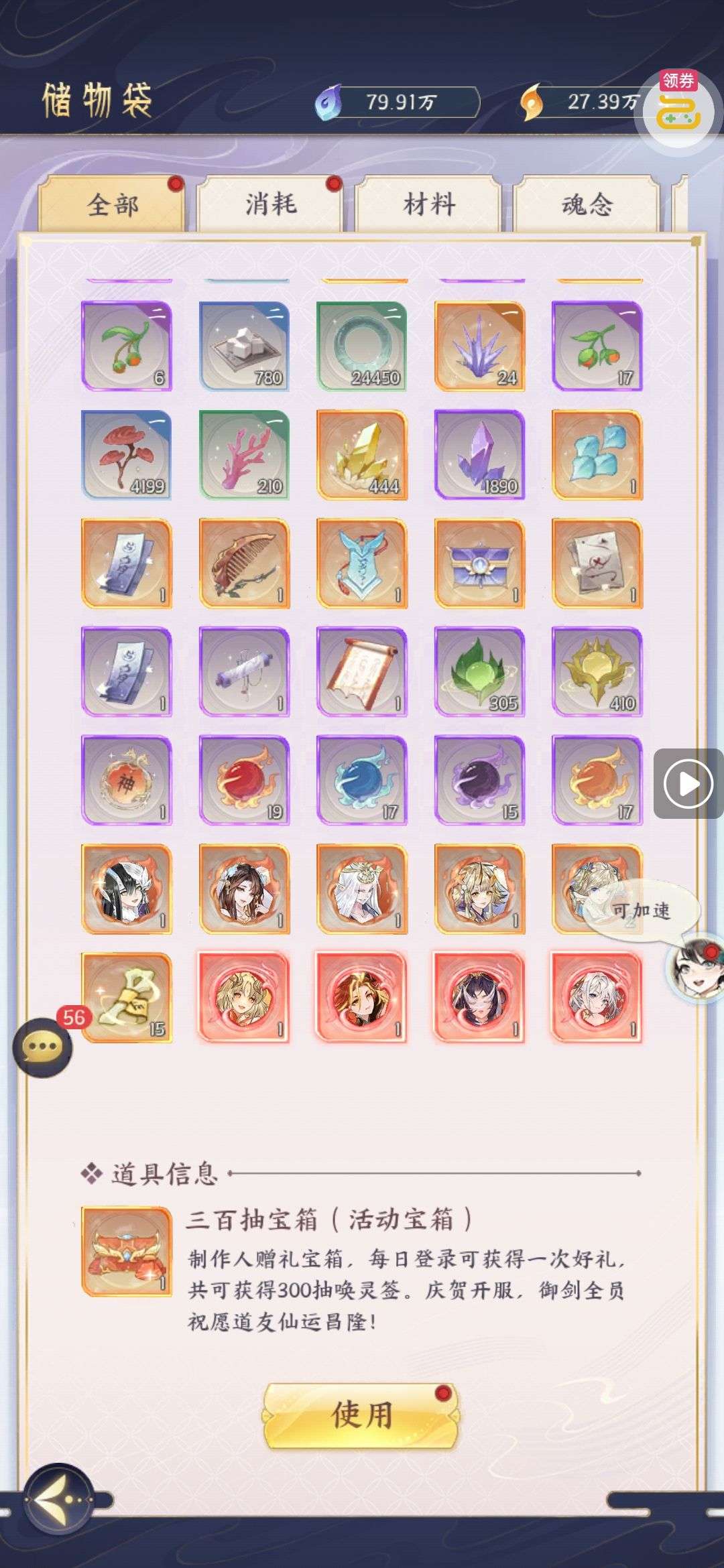 芯片熔炼石*1、离子探针*50、净化金属*50(每个账号限领一次)