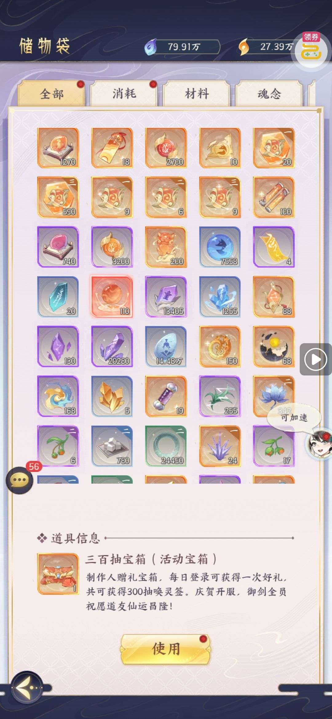 夺宝券*1、比武令*1、5星随机将魂*10(每个账号限领一次)