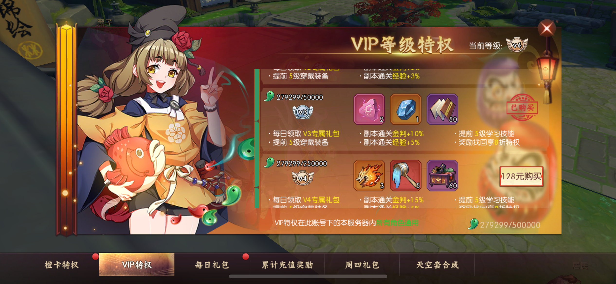 19武器5200代金1万5勾玉。天空套