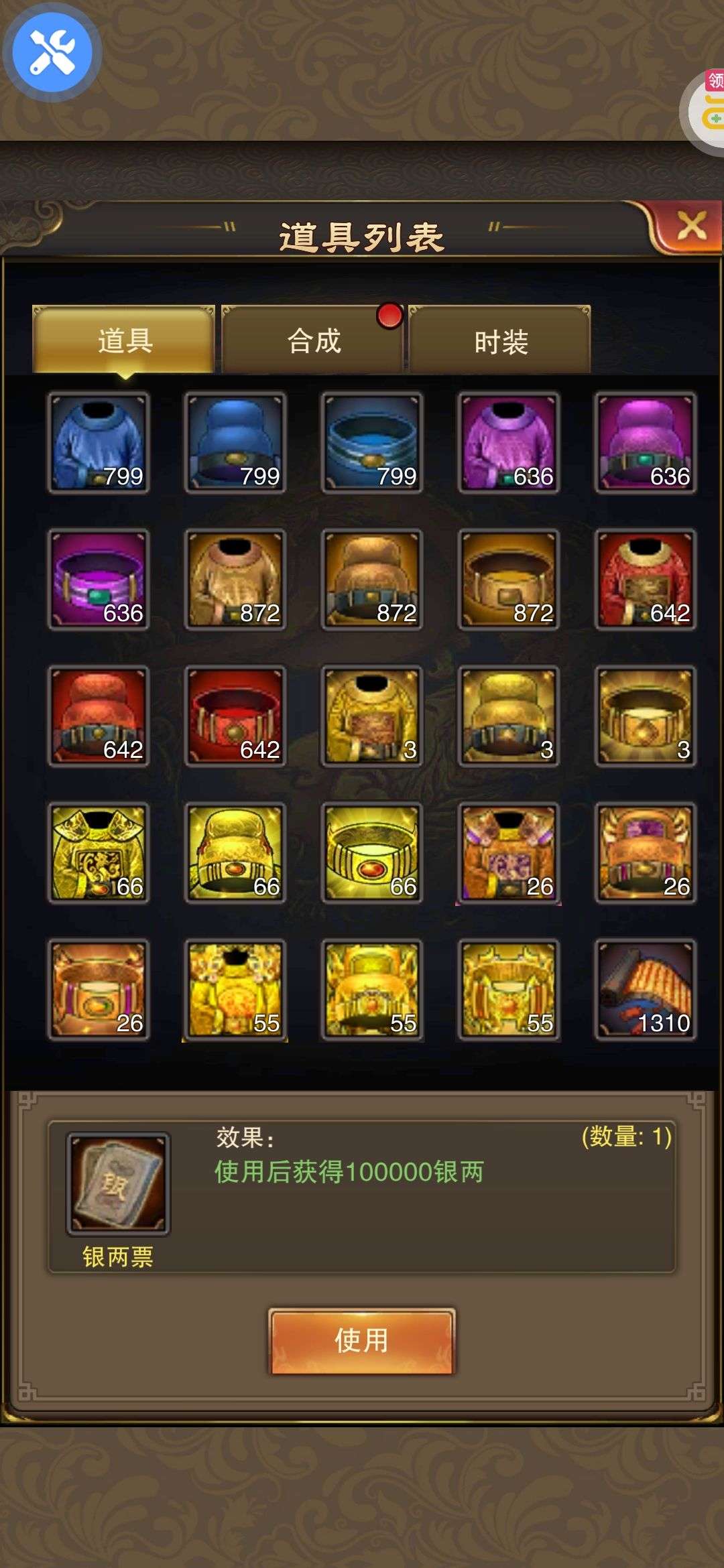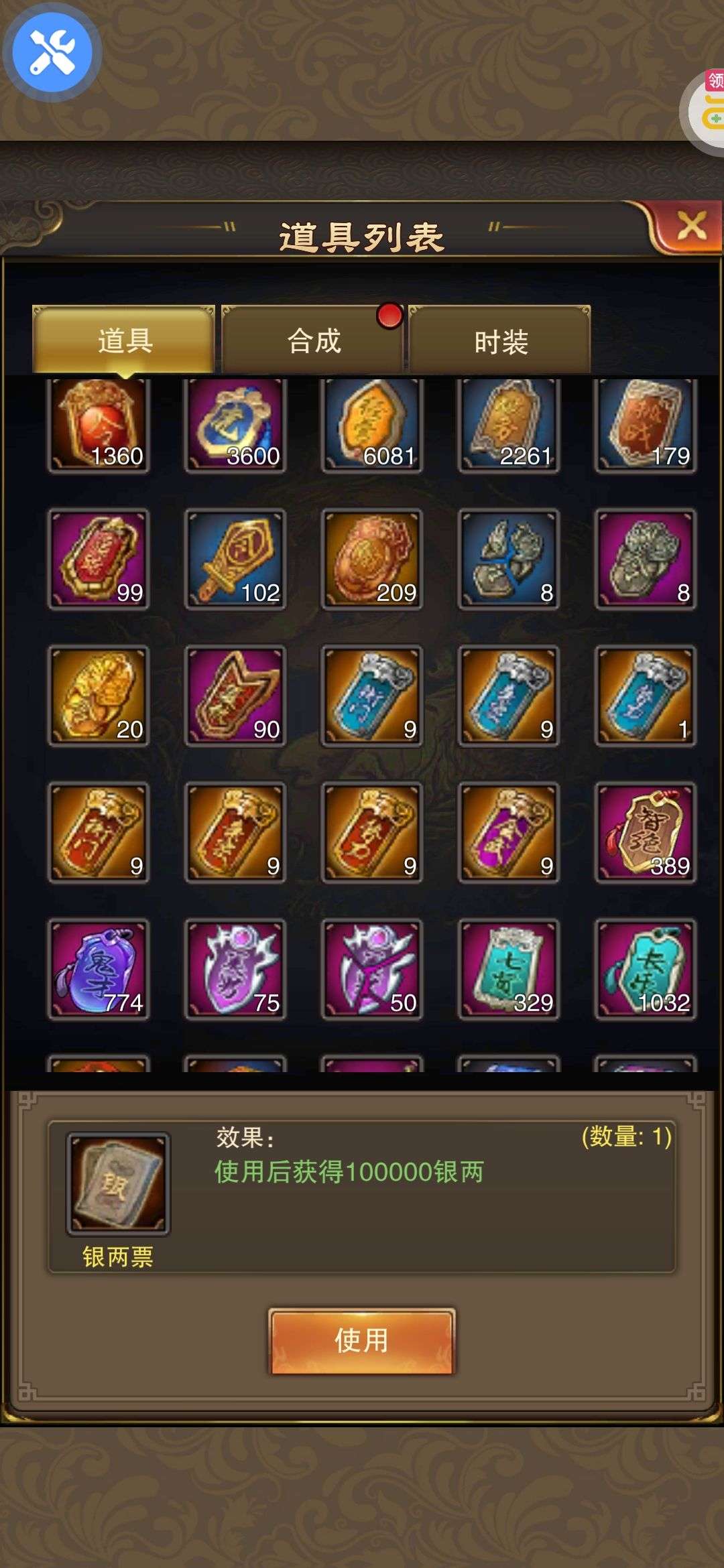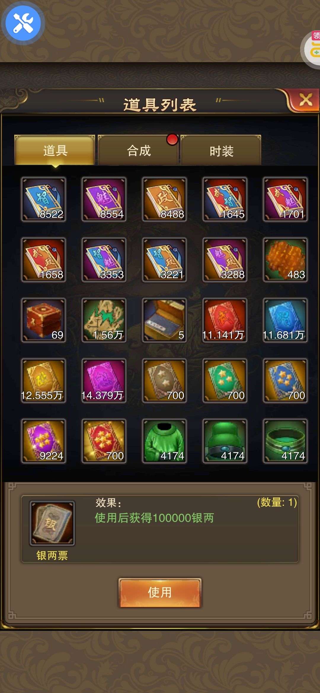 夺宝券*1、比武令*1、5星随机将魂*10(每个账号限领一次)