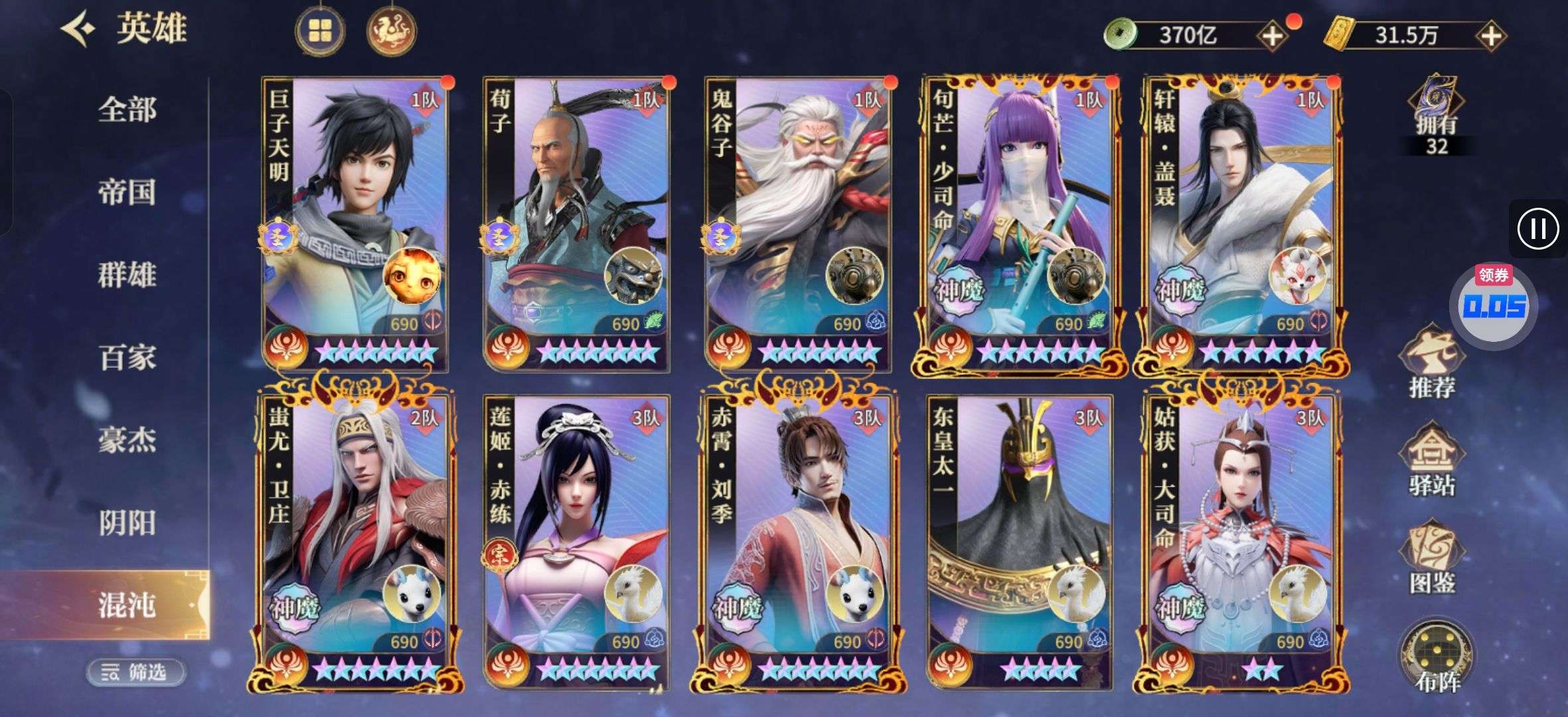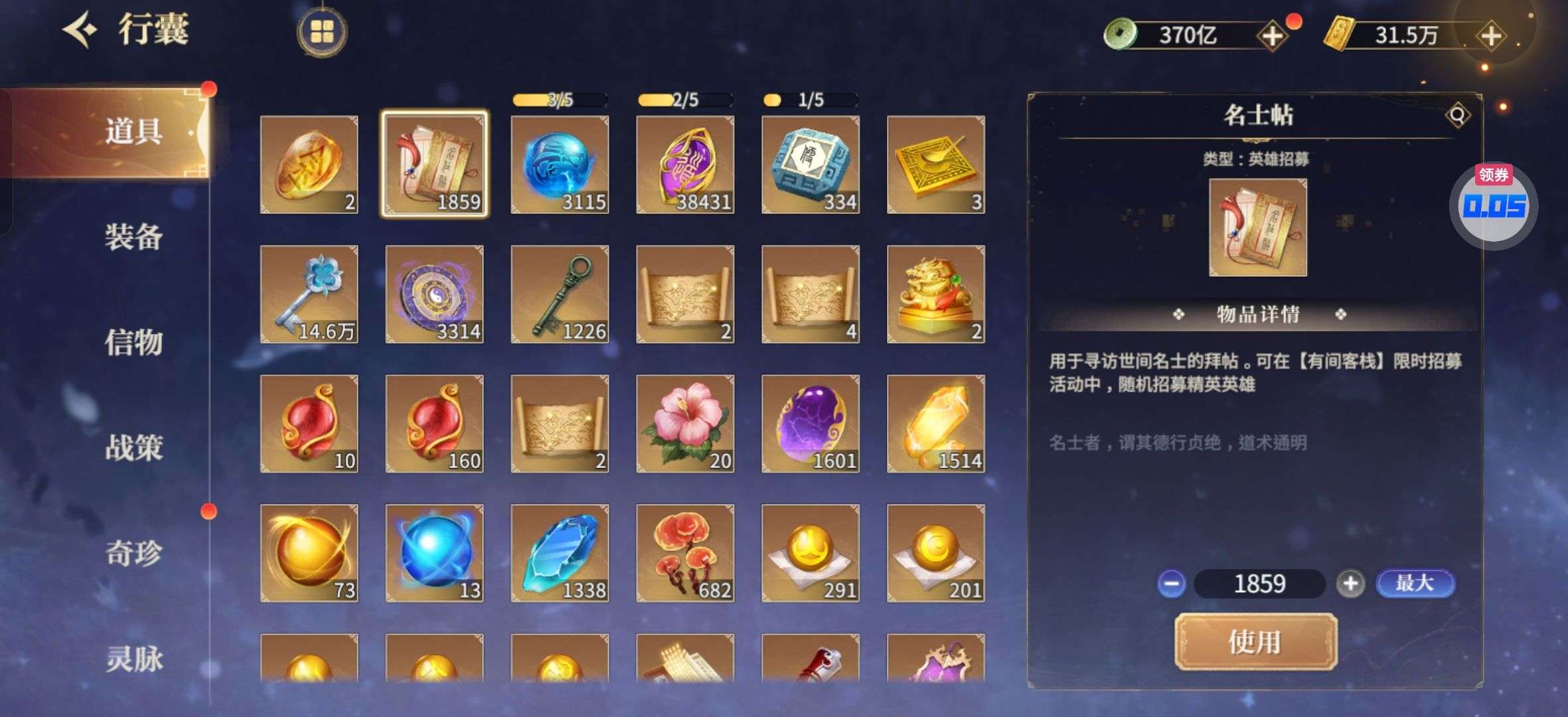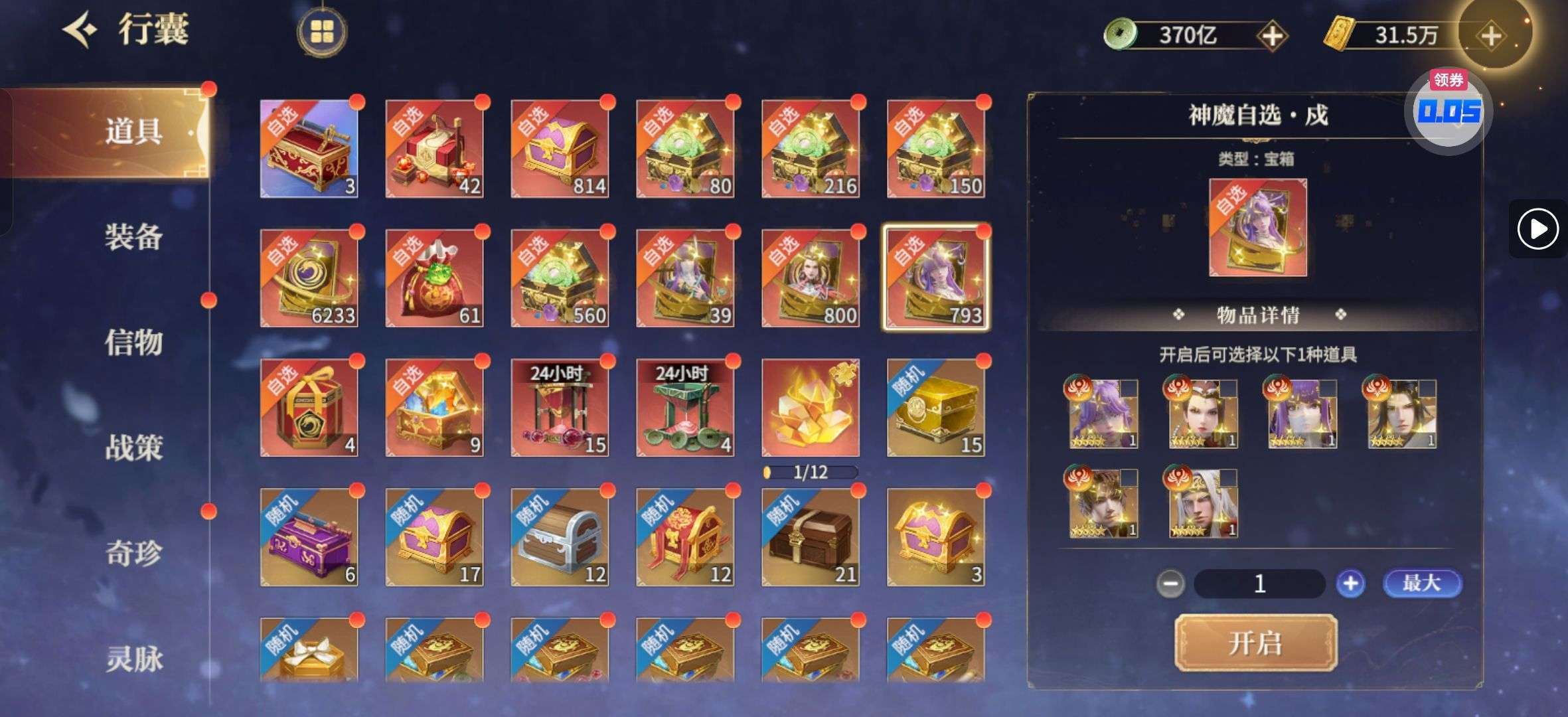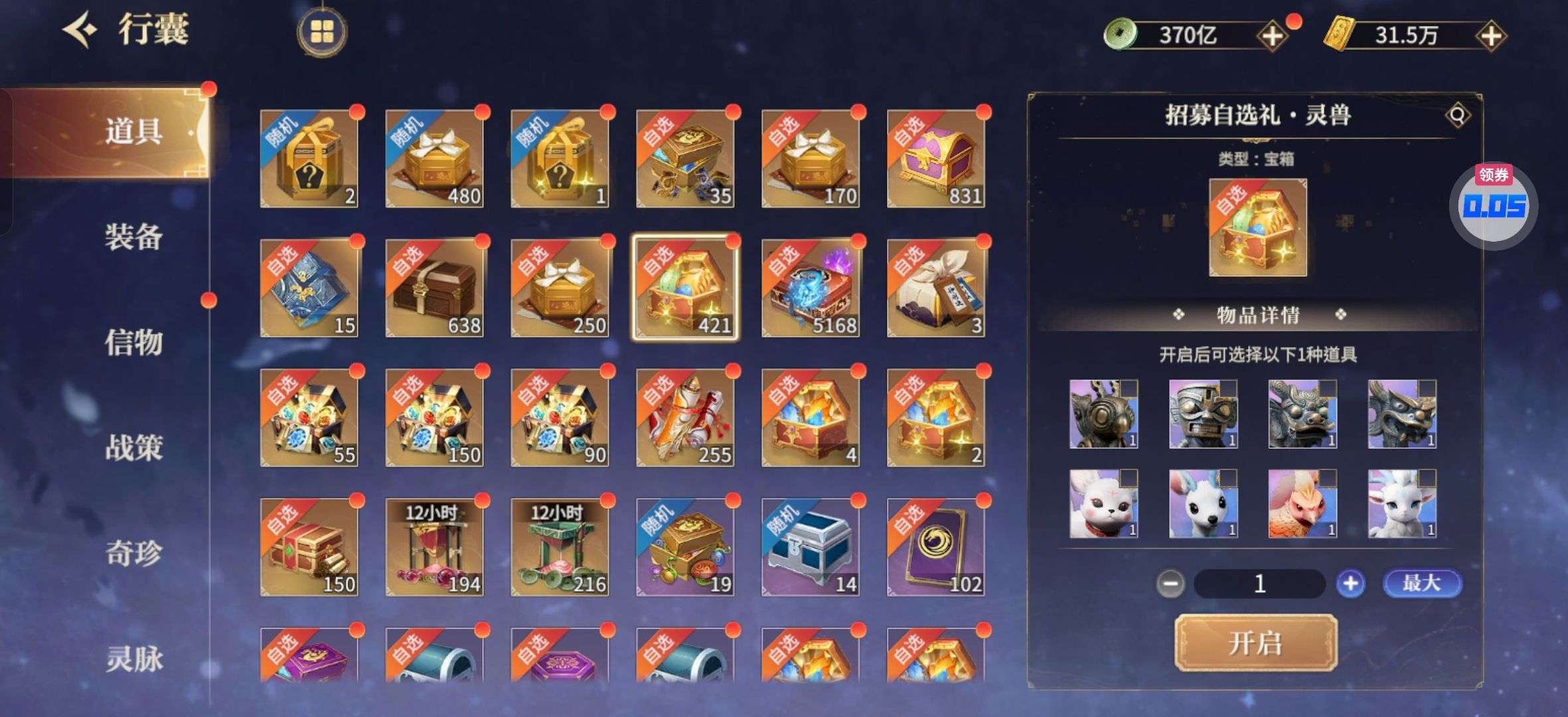 混沌神魔碎片1600,宠物箱子400多,各类招募钥匙