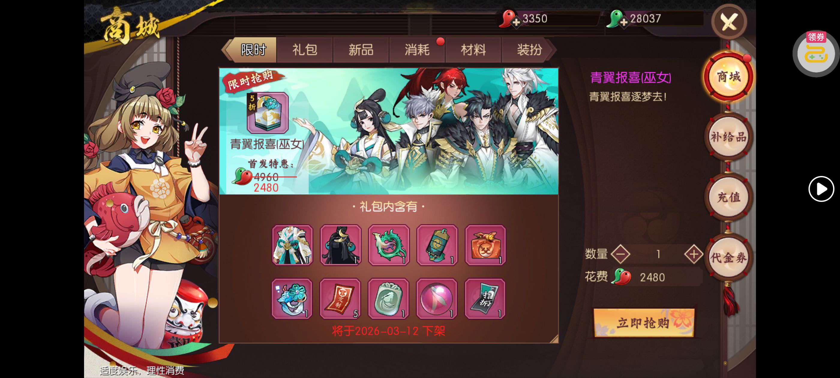 夺宝券*1、比武令*1、5星随机将魂*10(每个账号限领一次)