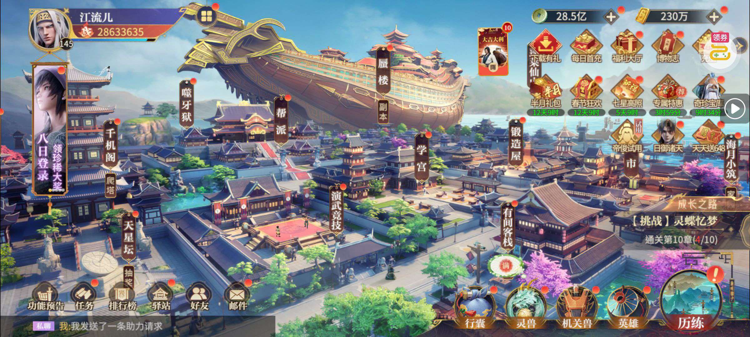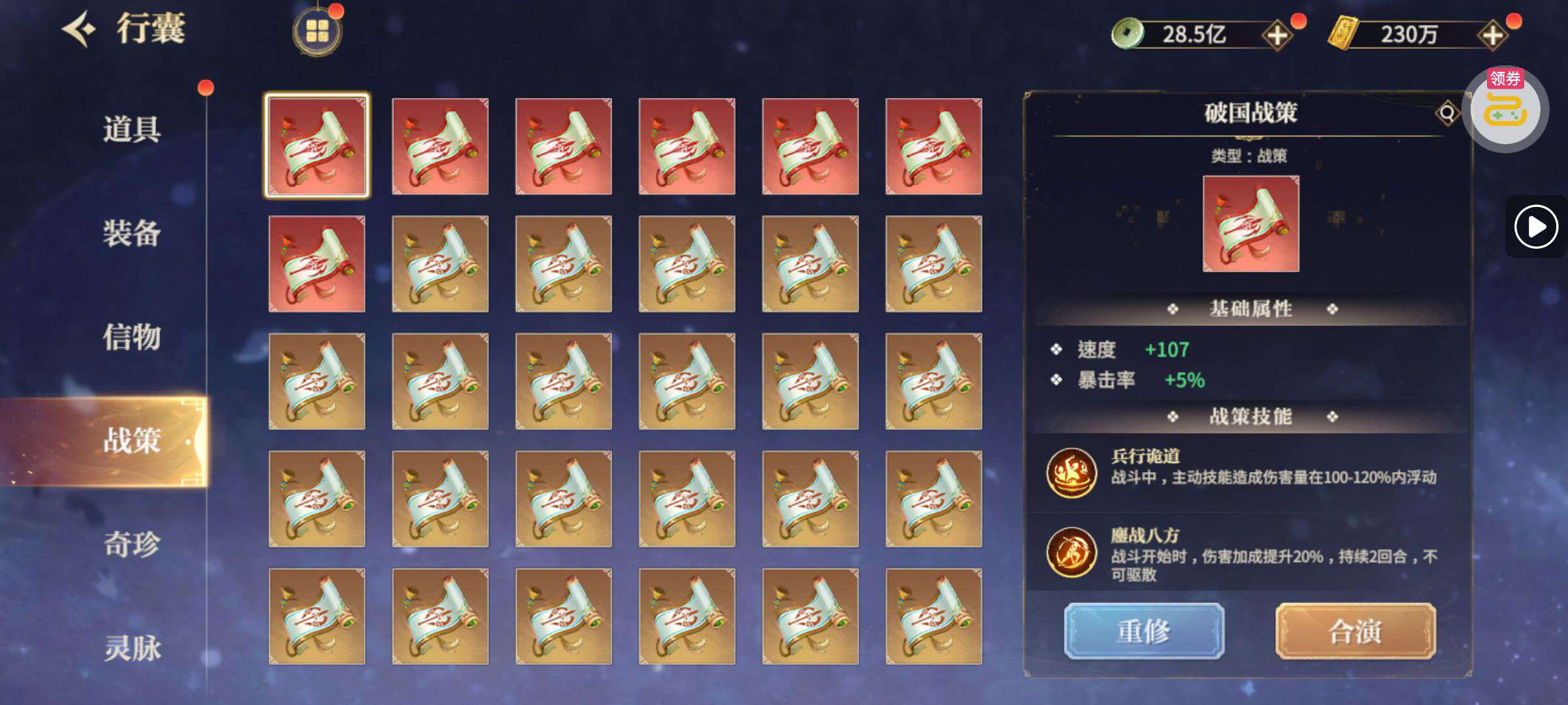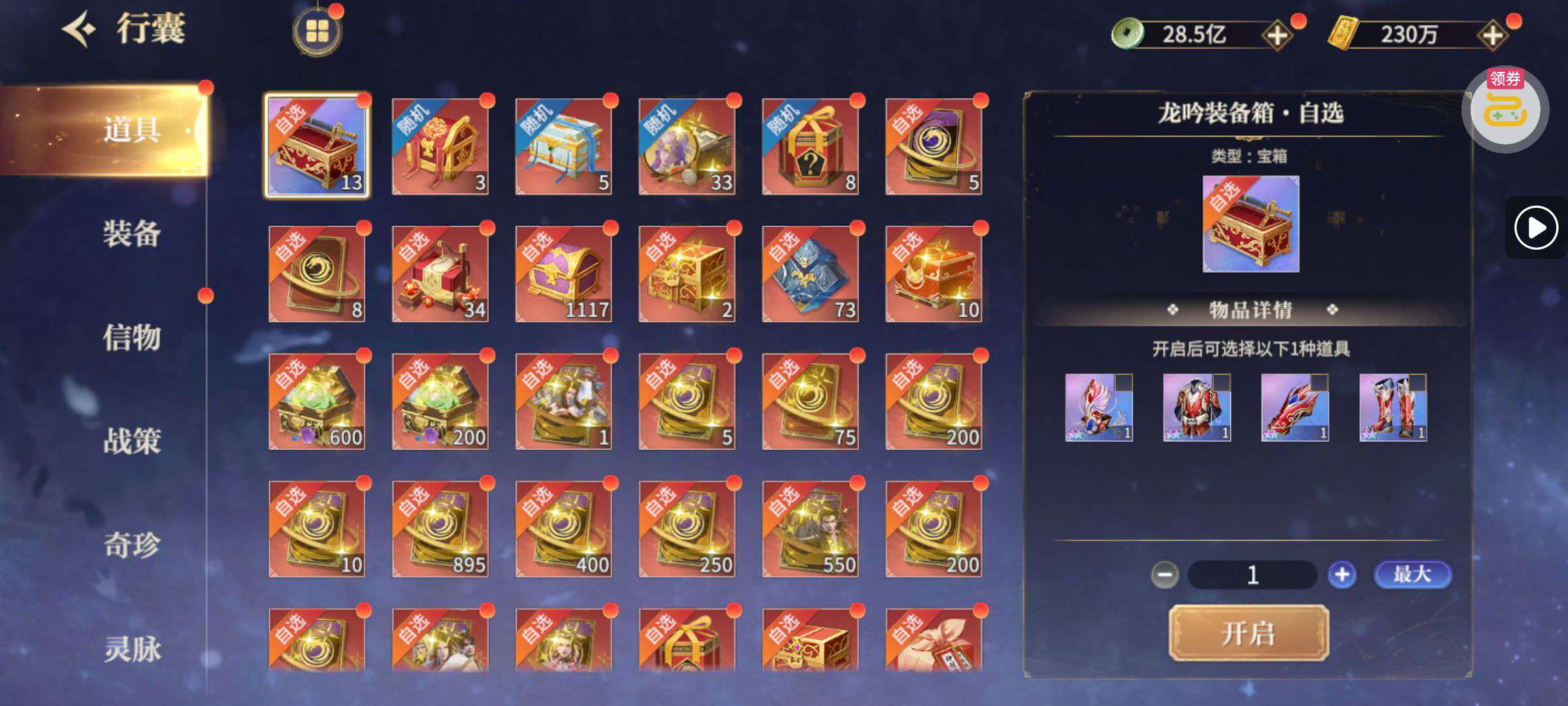 夺宝券*1、比武令*1、5星随机将魂*10(每个账号限领一次)