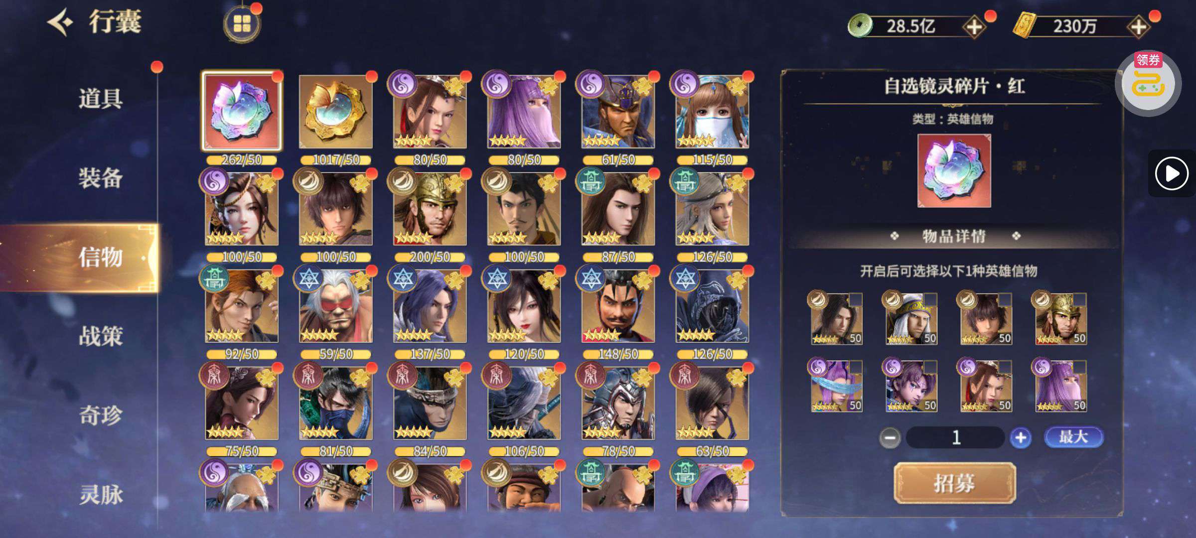 混沌神魔碎片1600,宠物箱子400多,各类招募钥匙