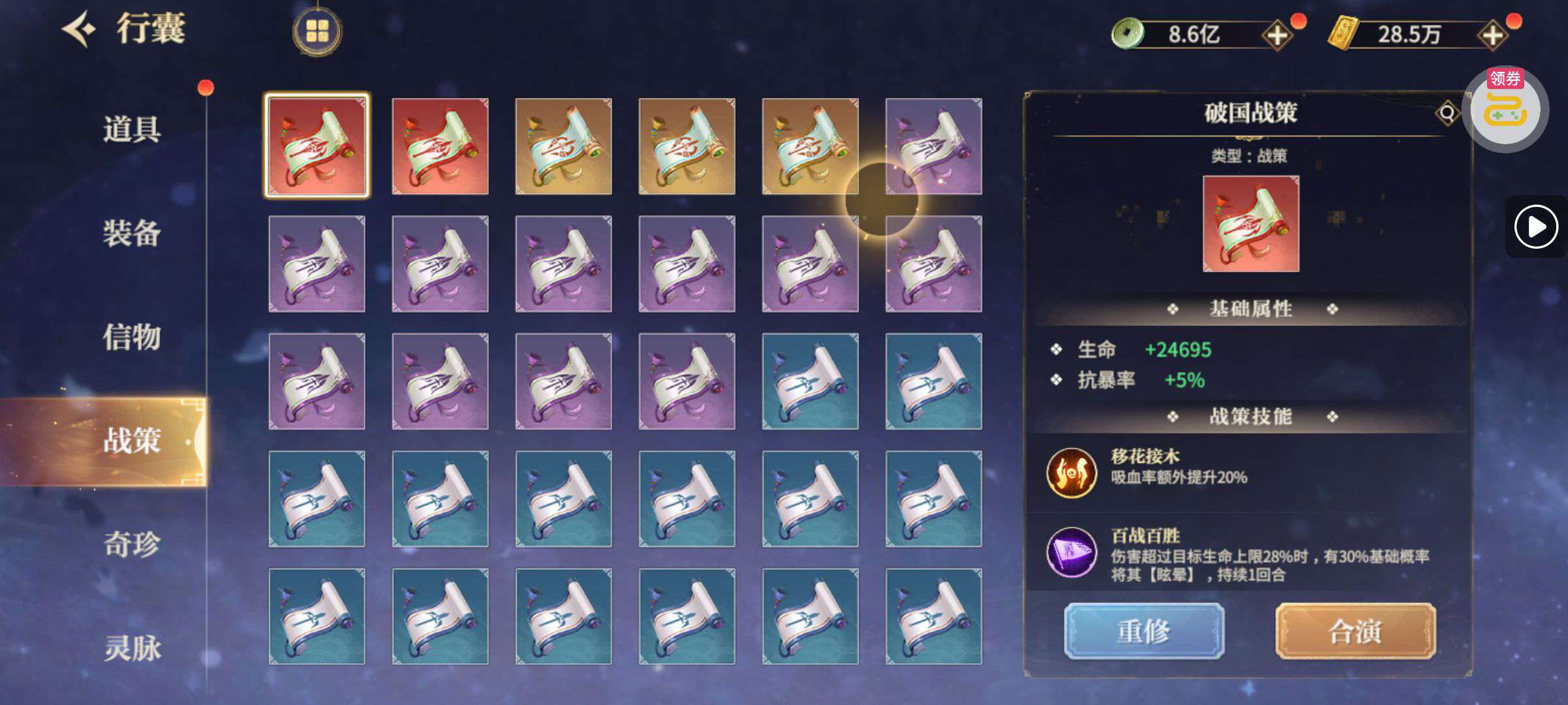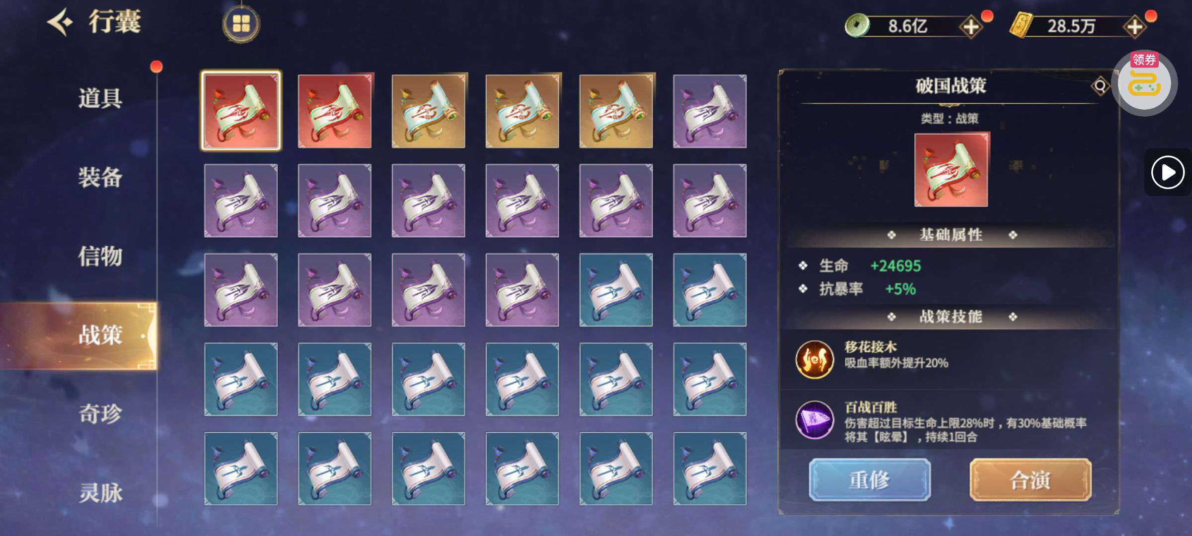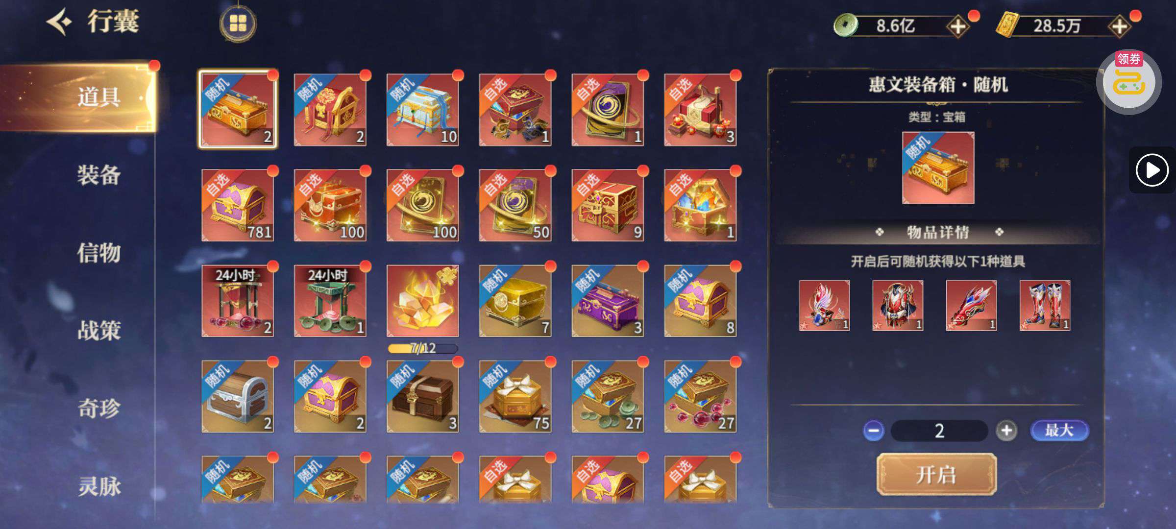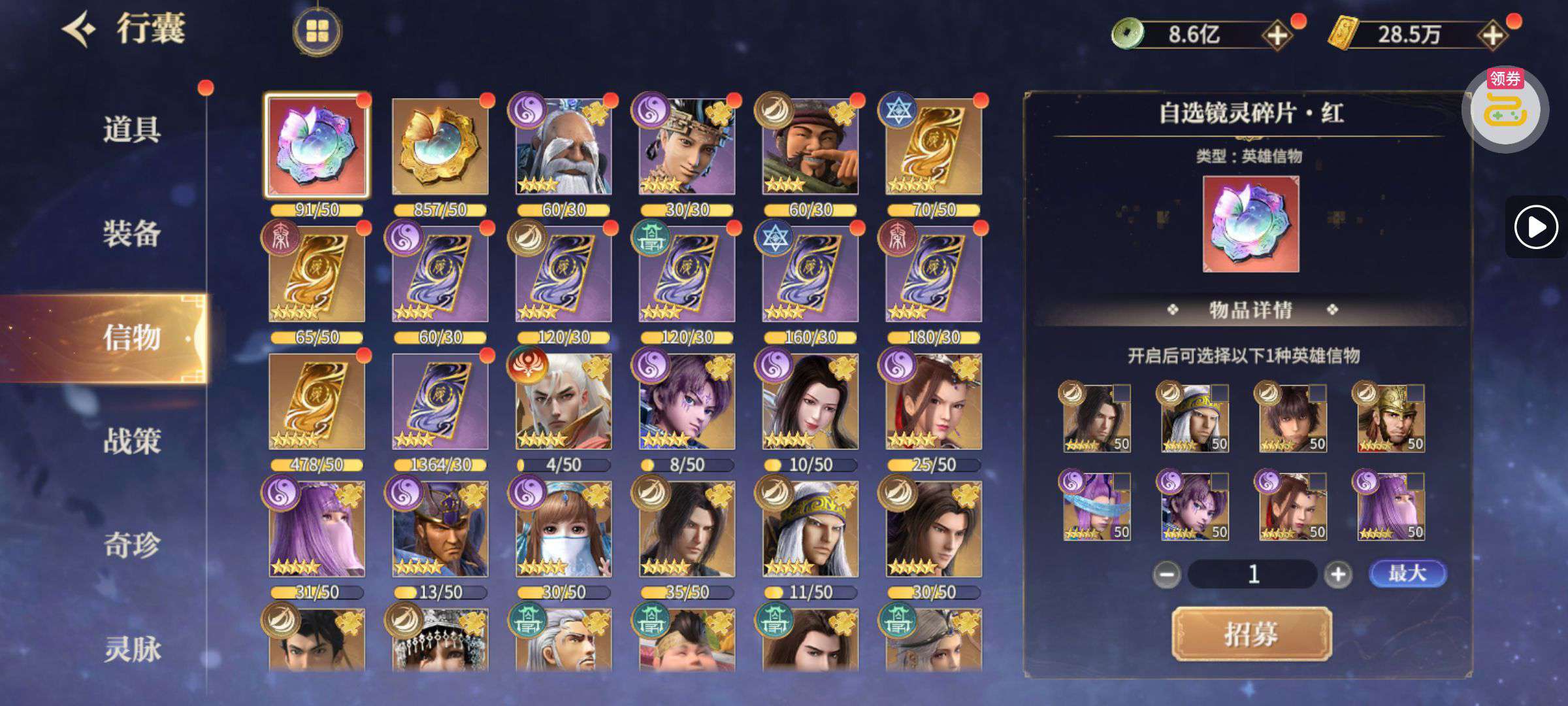 夺宝券*1、比武令*1、5星随机将魂*10(每个账号限领一次)