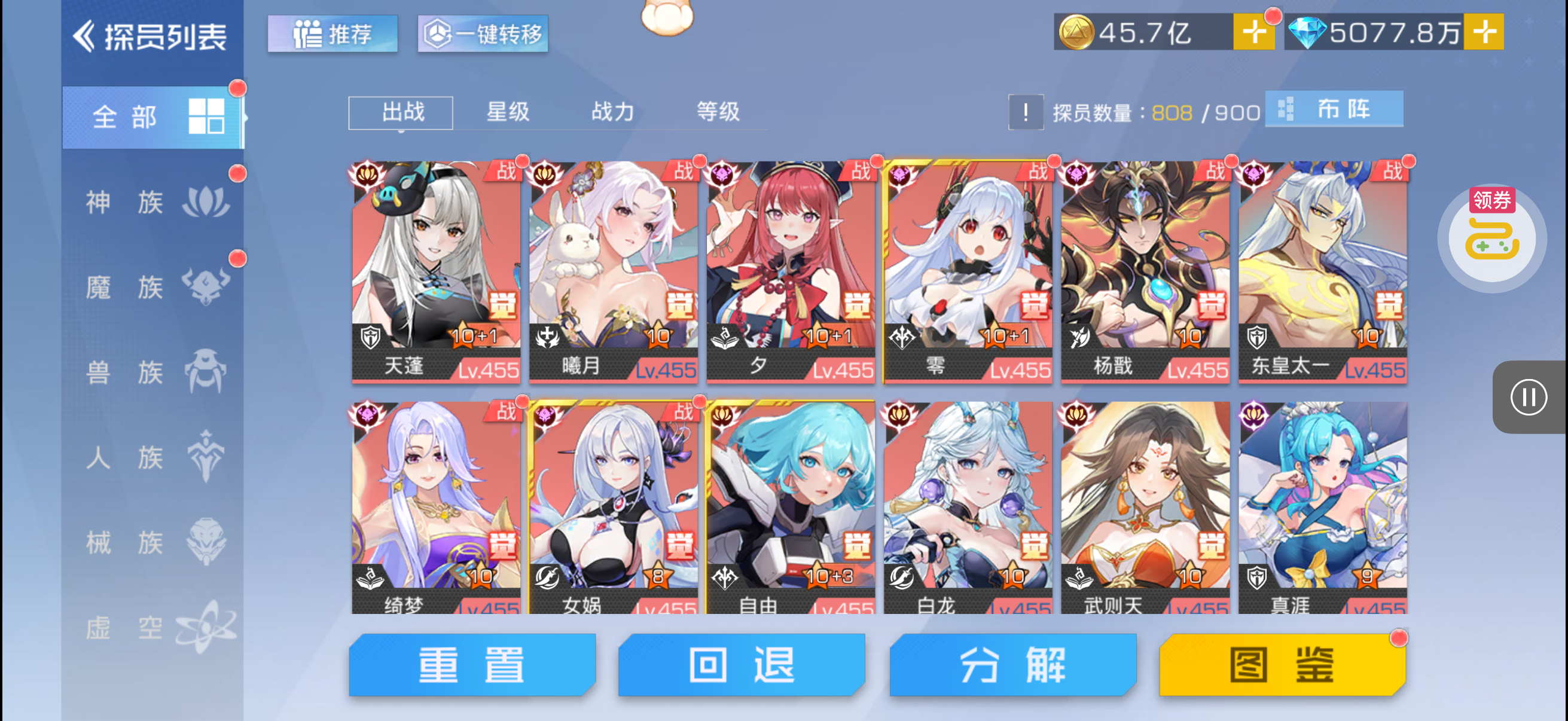 十八星女娲,不想过度的可以考虑一下,氪探全十八星以上