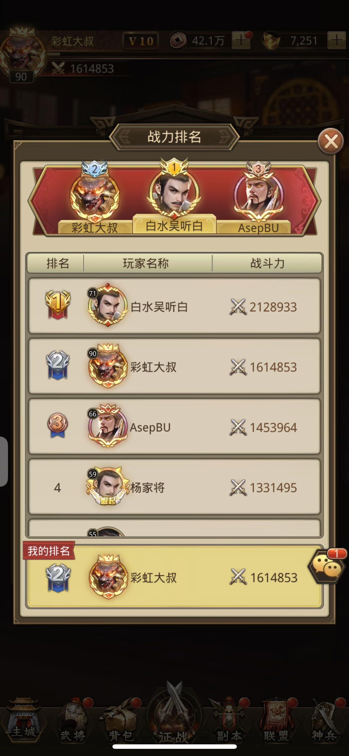 榜二战力等级第一