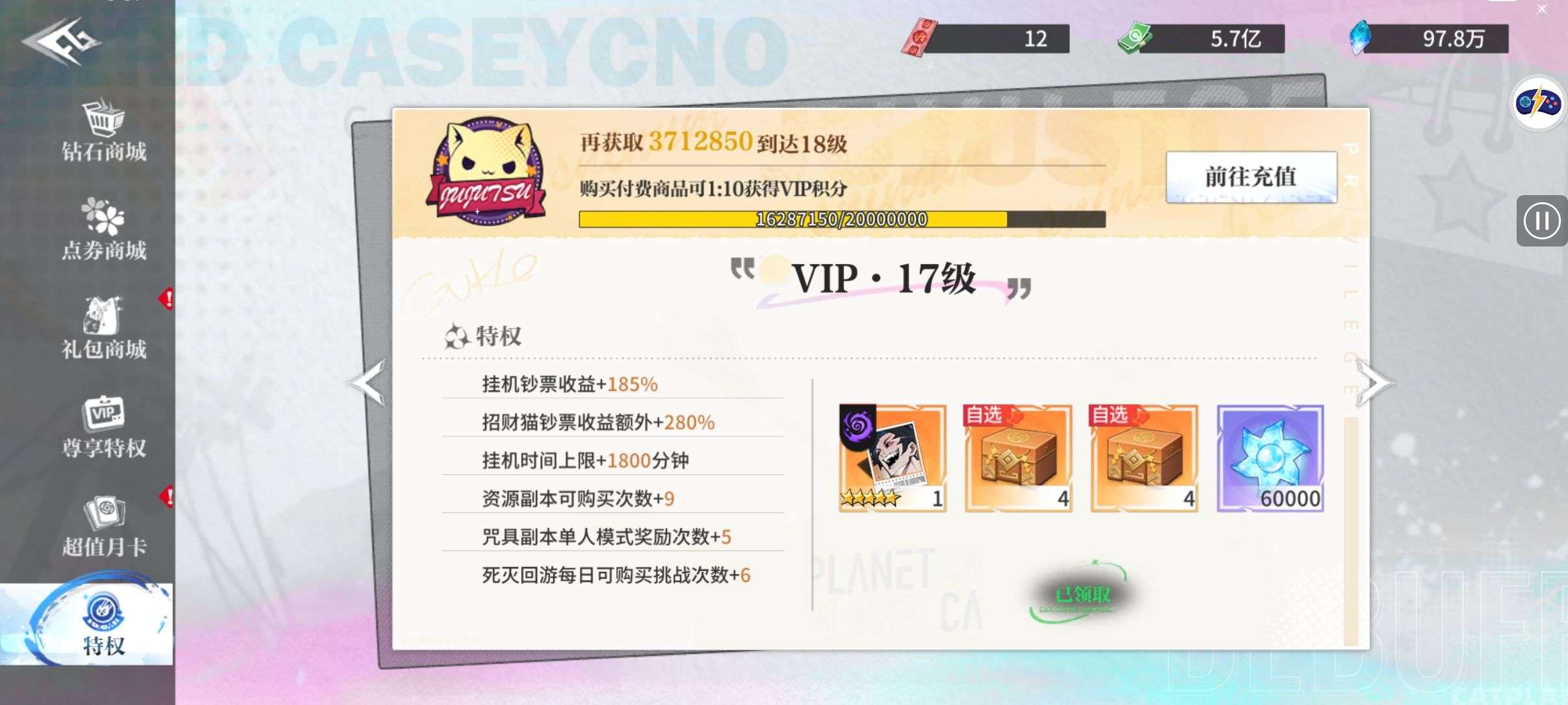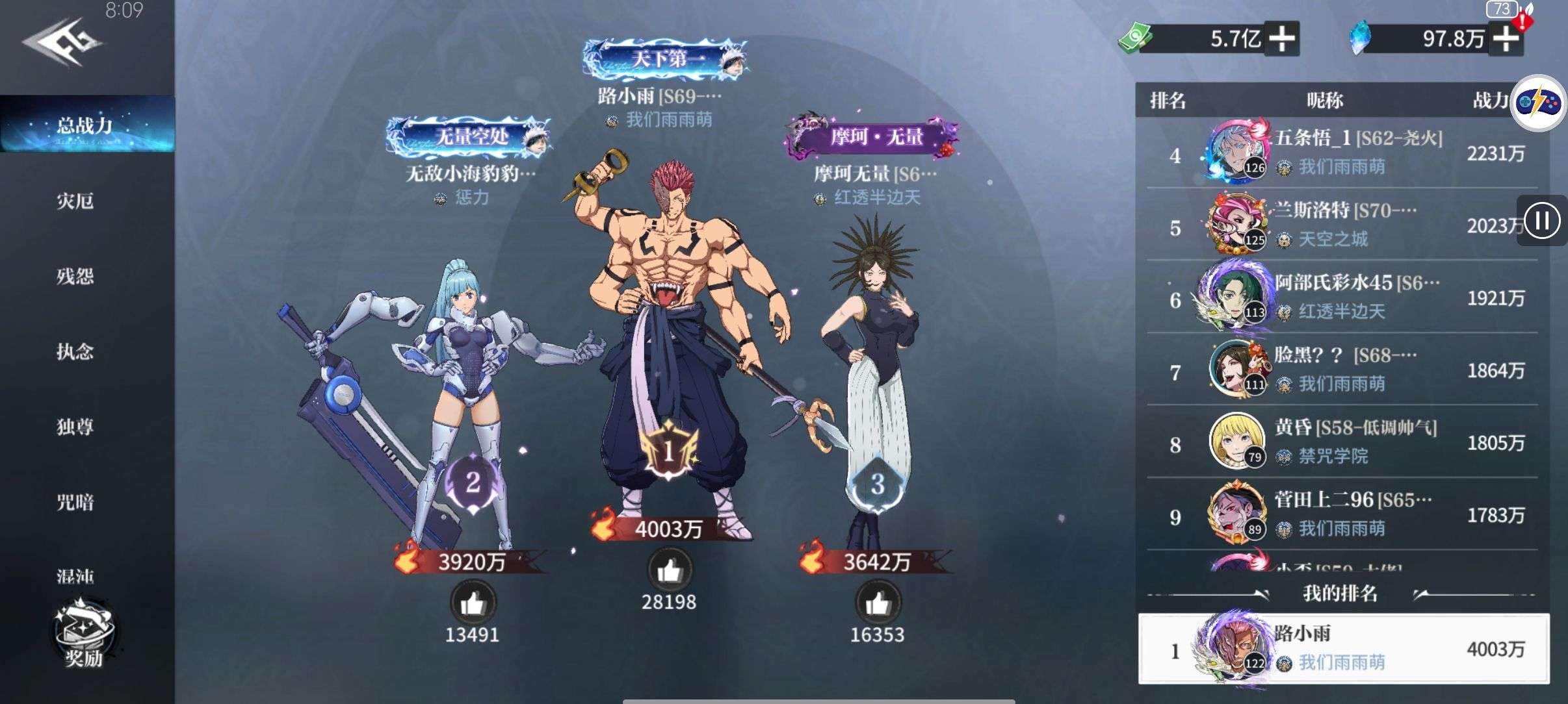 卡啊,战令,很多东西,战力应该可以升挺多,最近没心思玩了,就上游戏做任务就下号了,大概玩了1个月左右