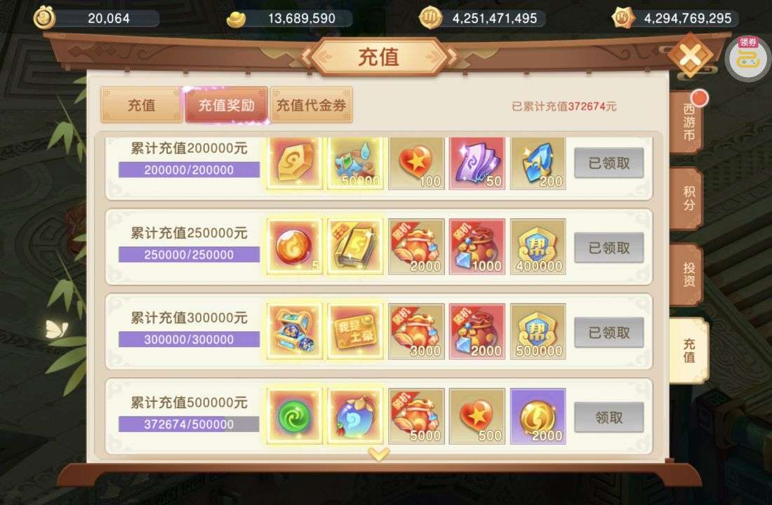 累计充值: