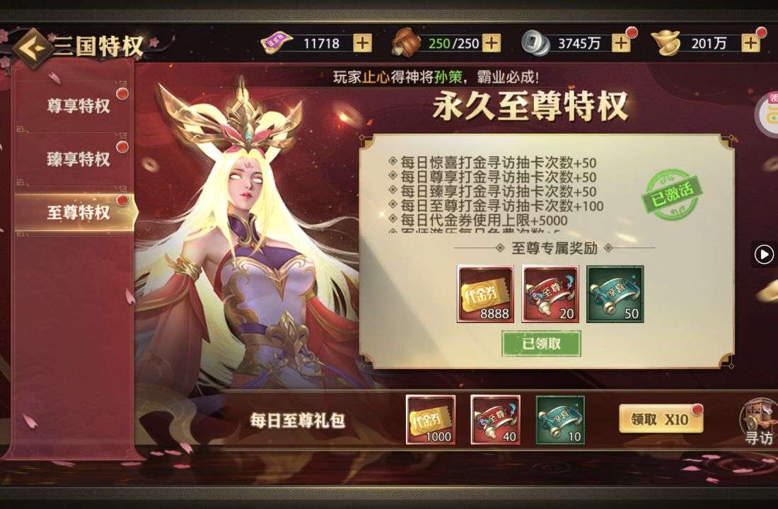 夺宝券*1、比武令*1、5星随机将魂*10(每个账号限领一次)