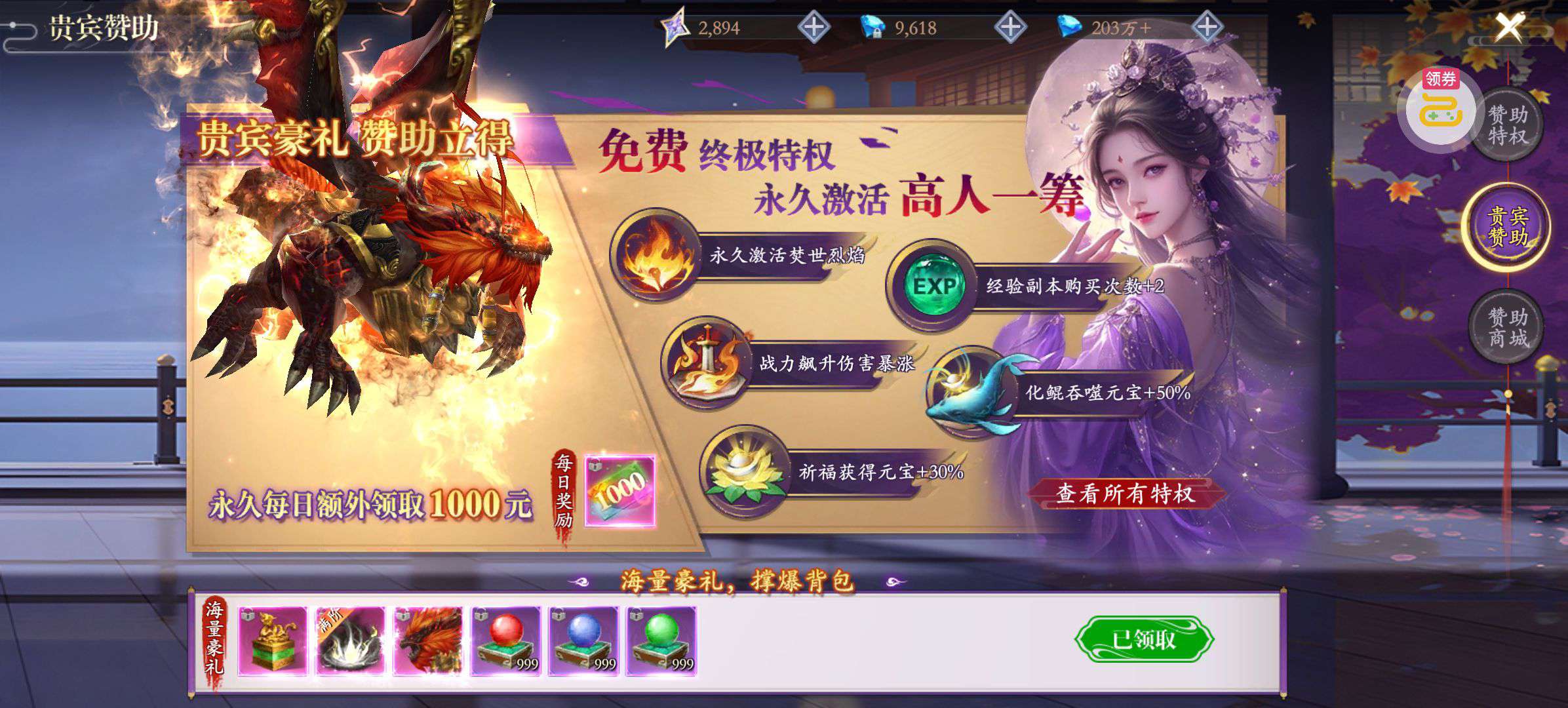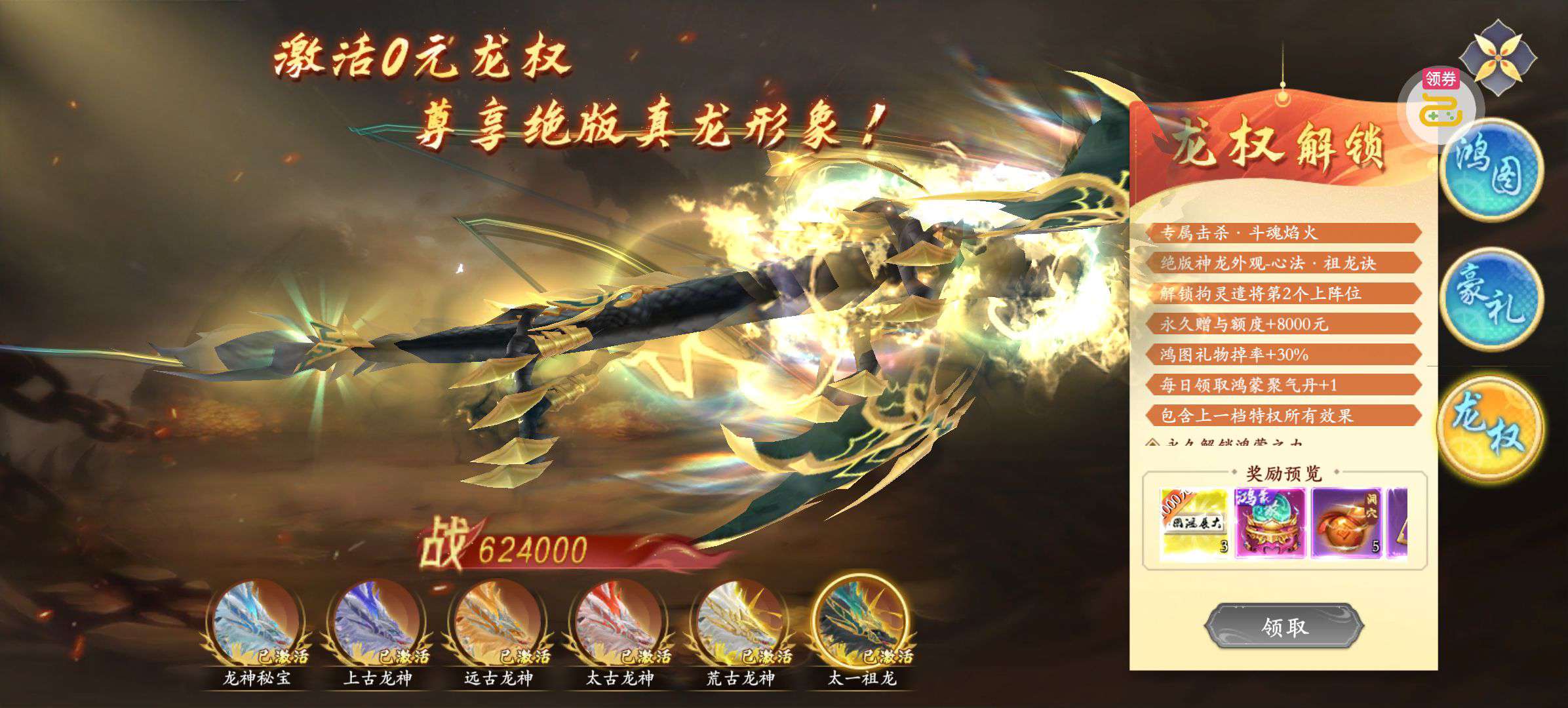 夺宝券*1、比武令*1、5星随机将魂*10(每个账号限领一次)