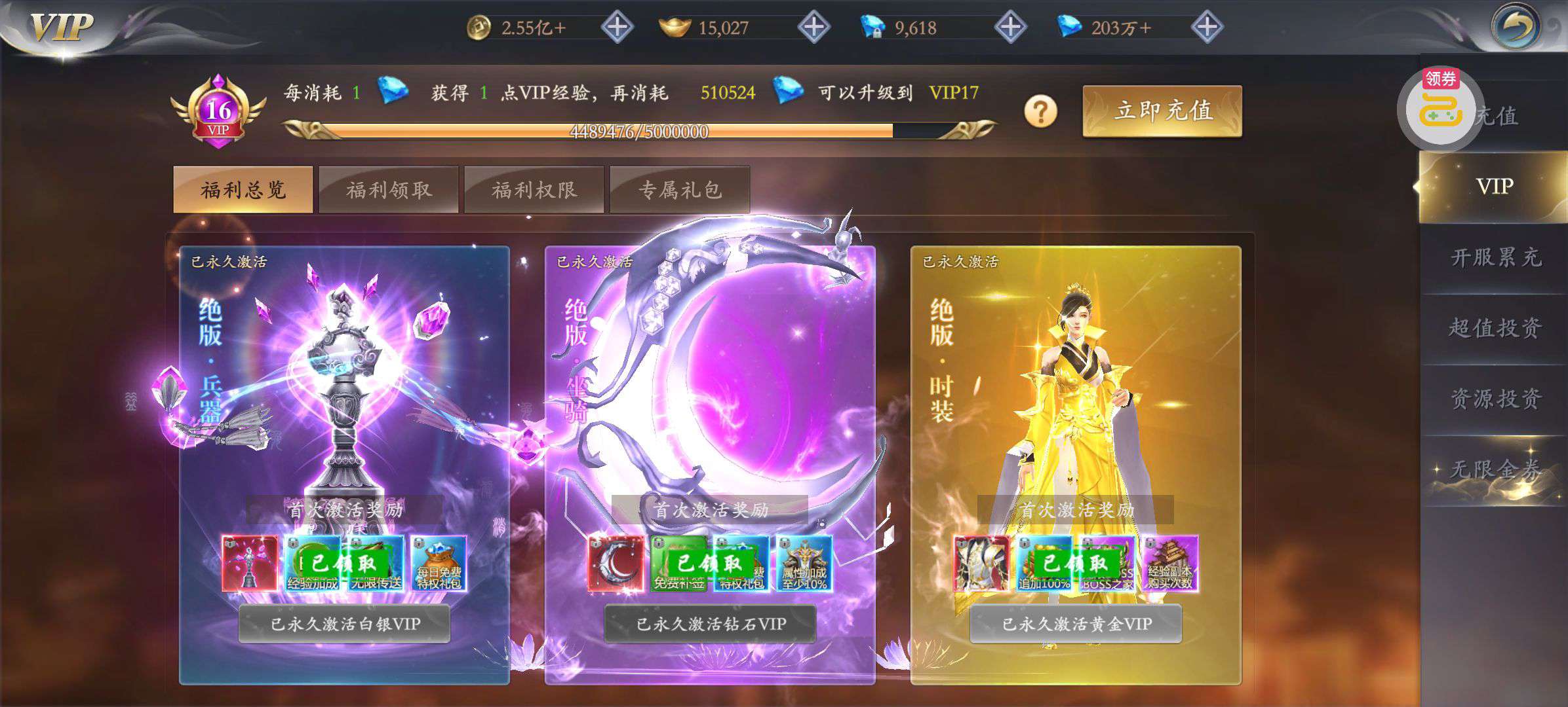 装备不愁,盟里是全区最大的盟,和谐相处,砖石多,